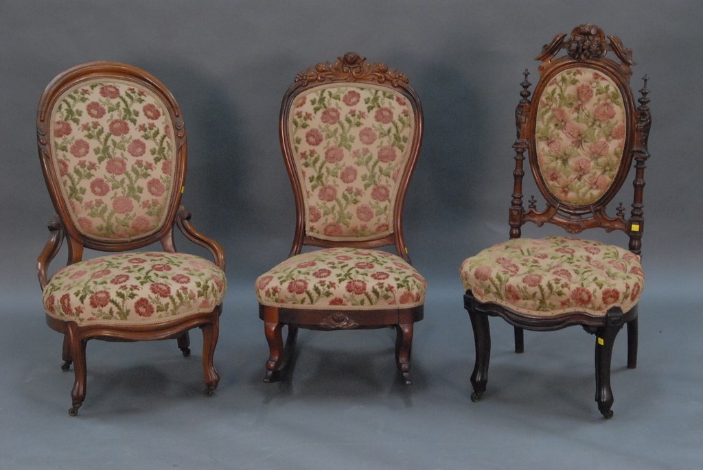Four piece lot: two Victorian rockers and two small Victorian loveseat.