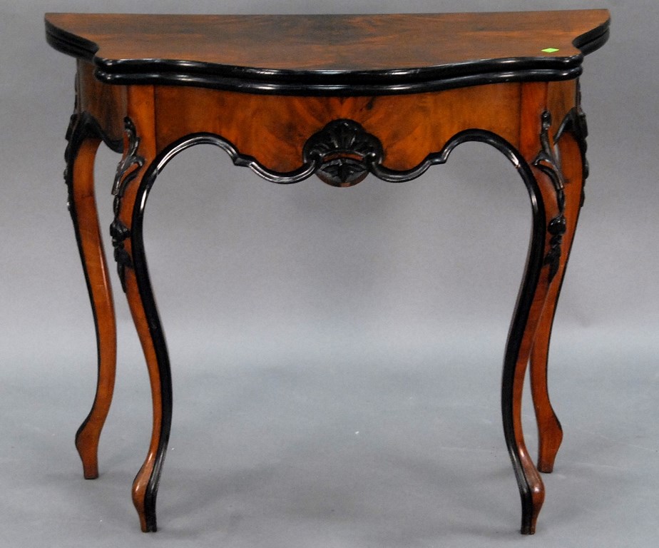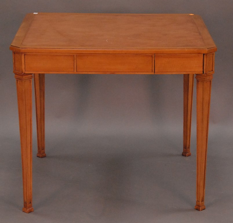 Baker Furniture Company games table with leather top and swing out cup holders, ht. 29 in. top: 34 x 34.