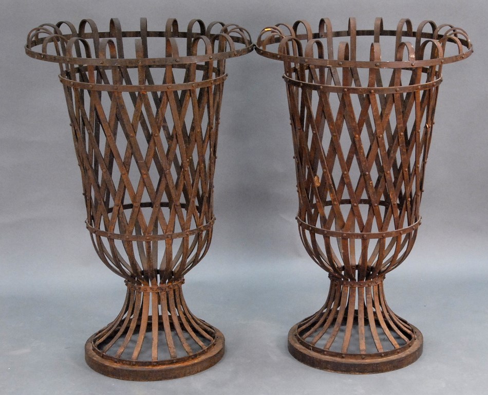 Pair of tall iron urns, ht. 44in. dia. 27in.