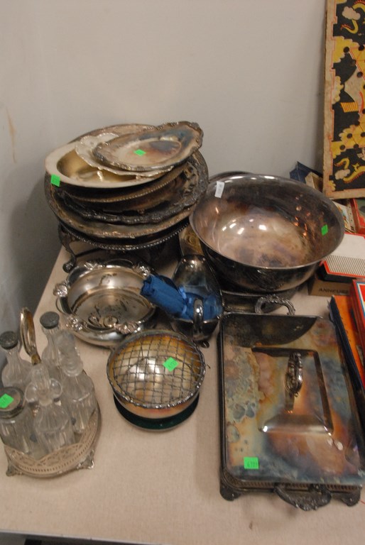 Group lot of silverplate including cruet set, trays, bowls, etc.