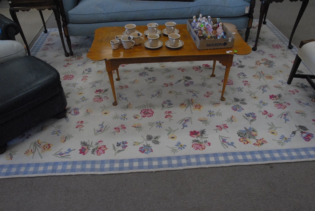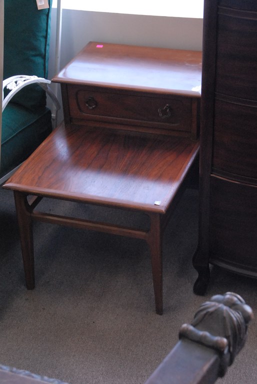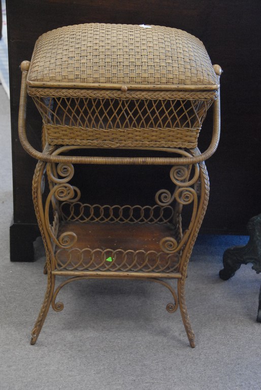 Wicker sewing/work table with cover attributed to Heywood Wakefield.