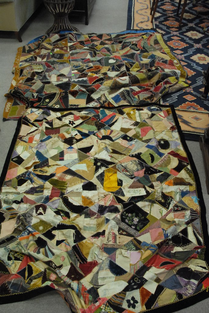 Two crazy quilts: one is signed and dated in two places Eva B. Martin Jan. 7 , 1895 and Florence C. Catch March 15, 1892.