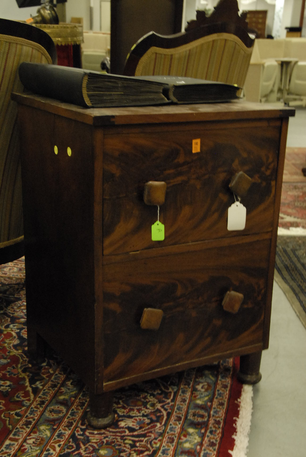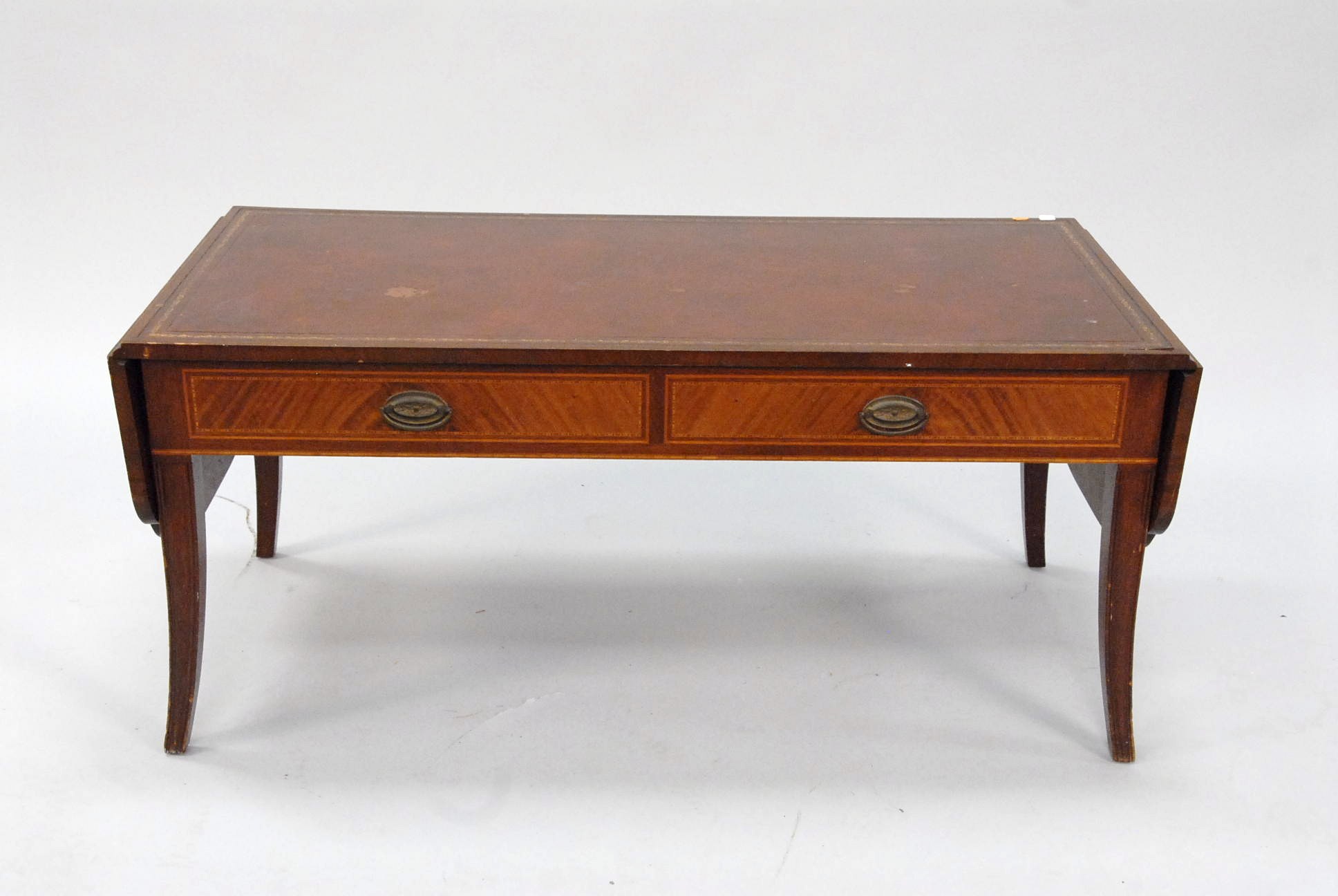 Signed Margolis leather top drop leaf coffee table with two drawers