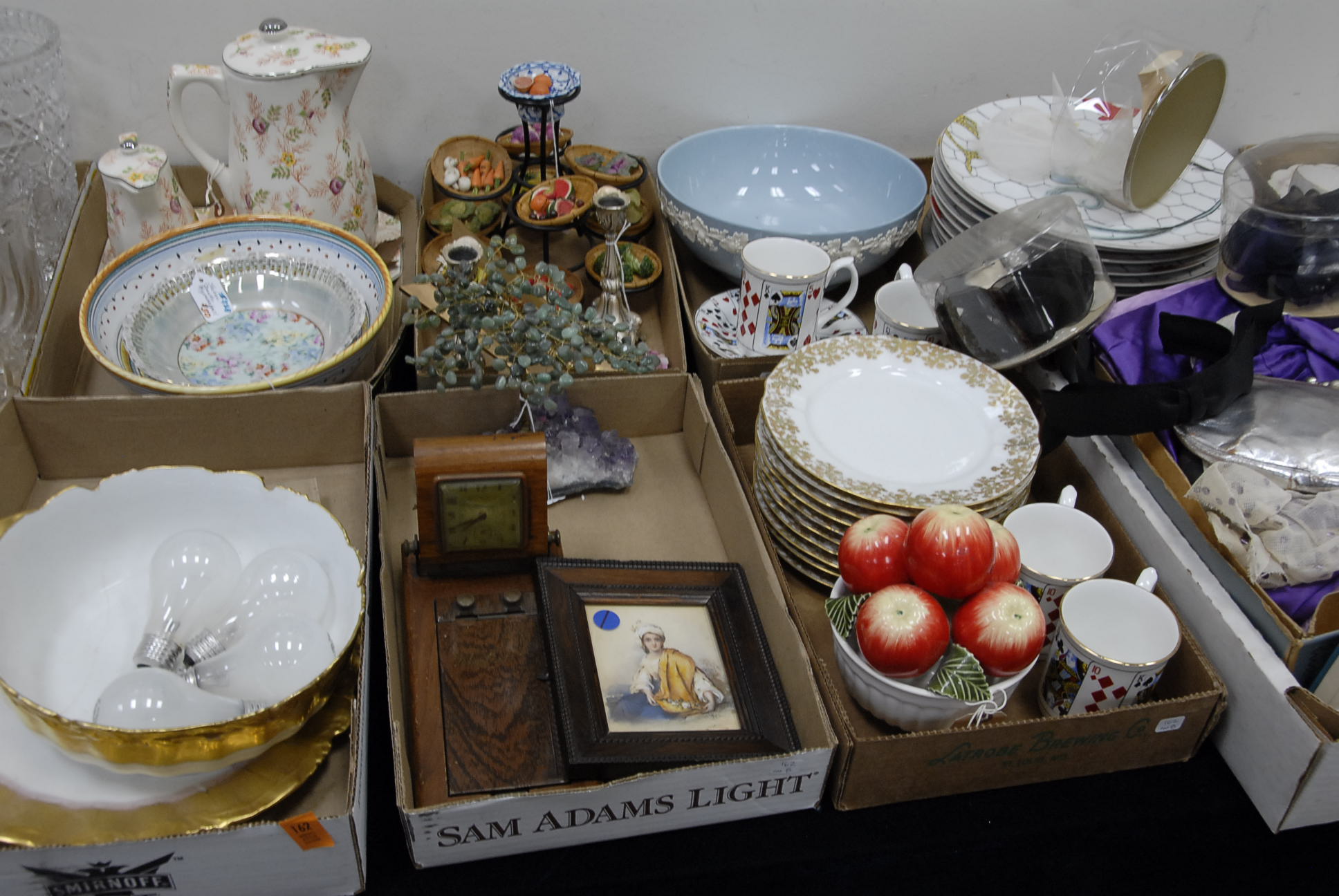 8 box lots including a Wedgwood bowl, Limoge plates, Limoge platter, candlesticks, a telephone list from the 1930’s, plates and misc.