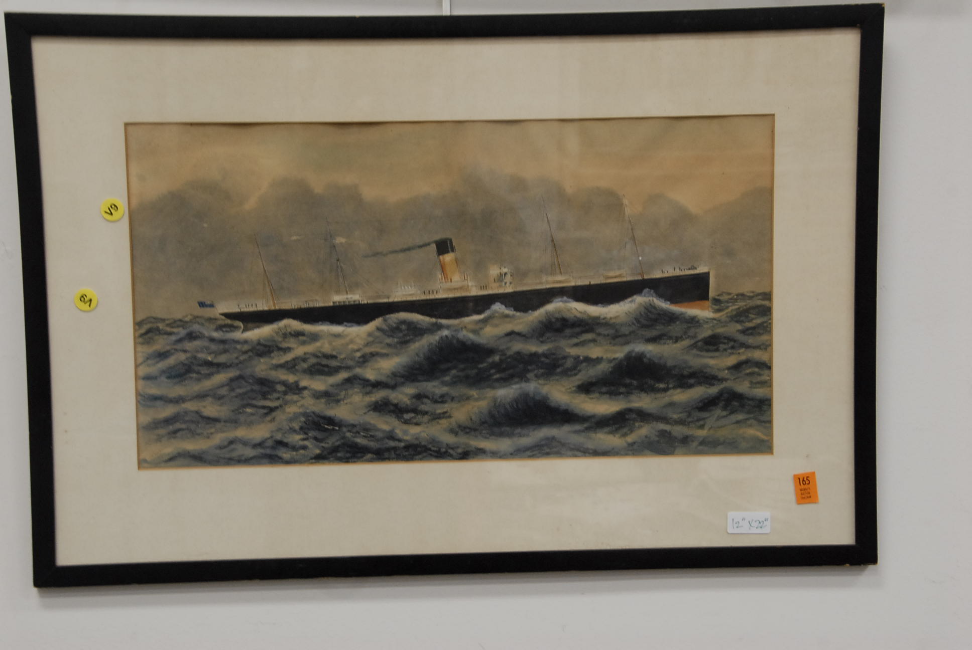 Watercolor painting by Gustiv P. Rimmer steamship Persic signed lower left