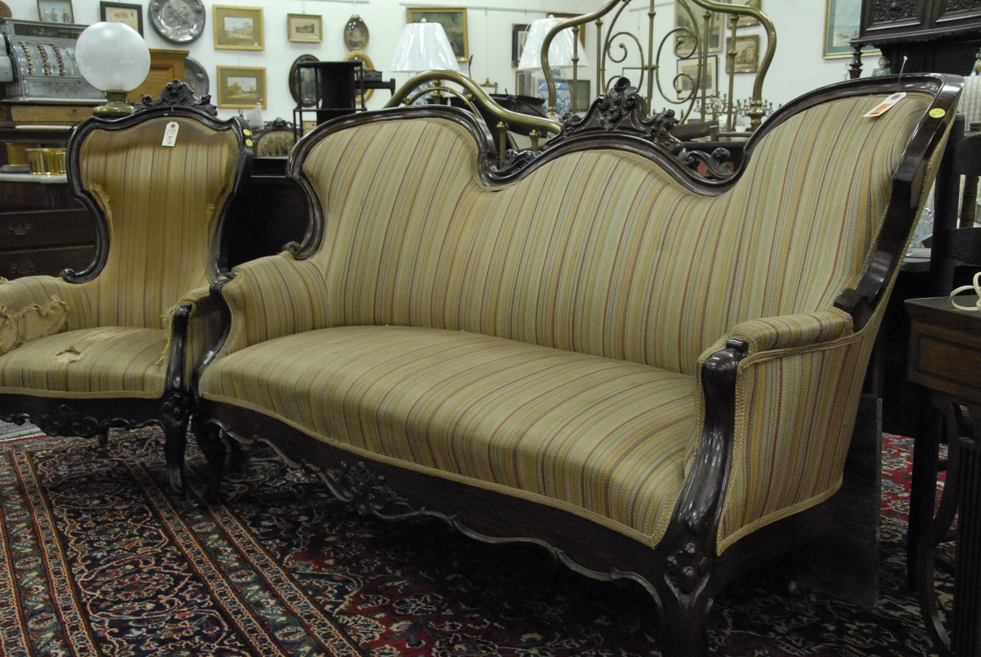 Victorian rosewood sofa along with a Victorian gentlemans chair