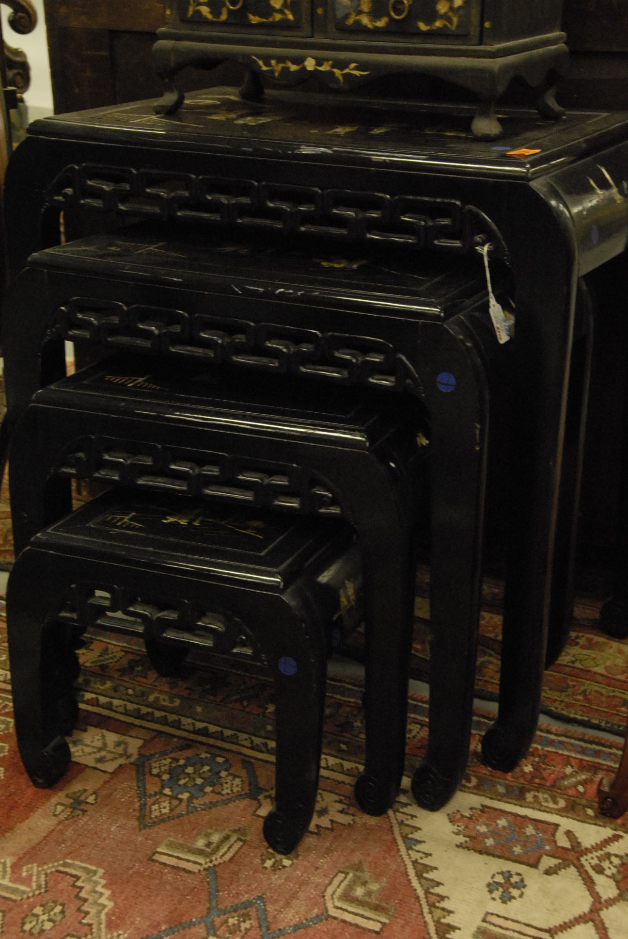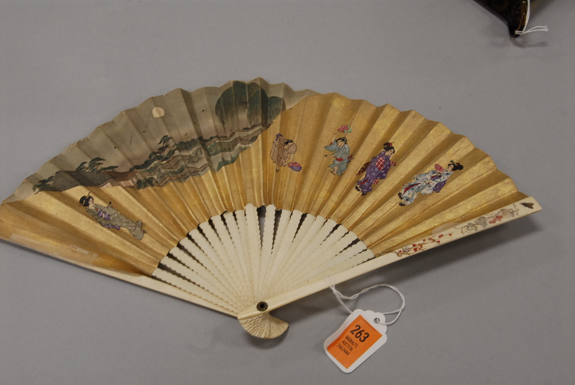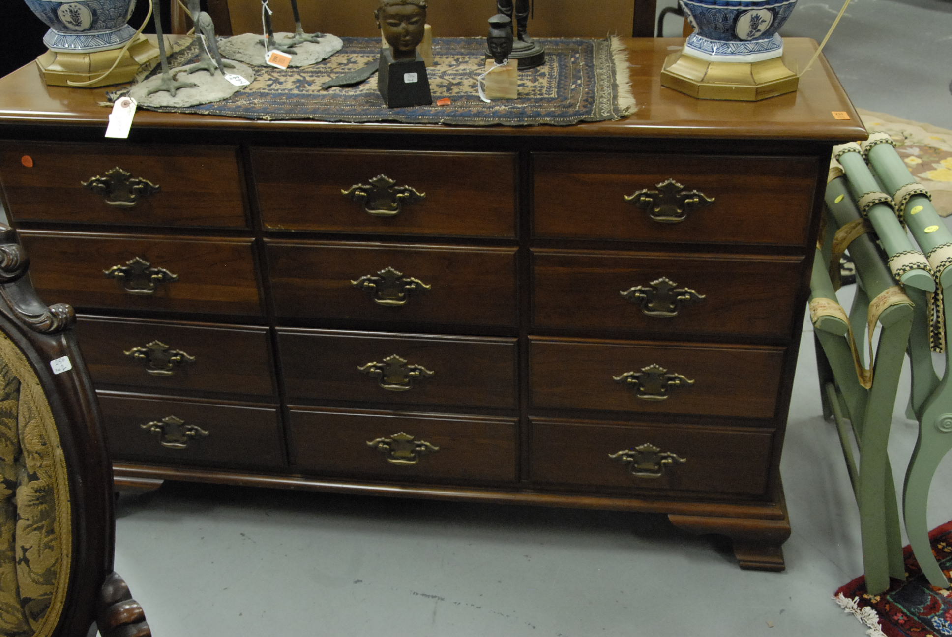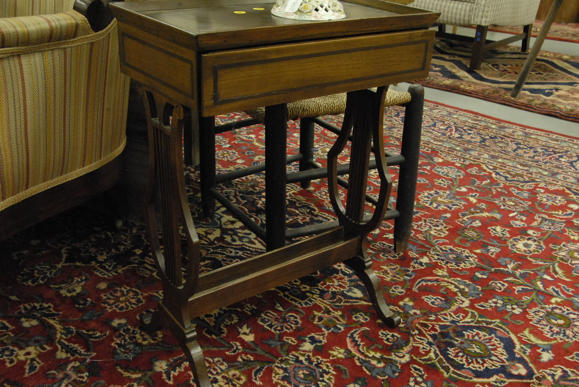 Five piece lot, a Chippendale style drop leaf table, as is, a ladder back chair, and a set of three faux bamboo Sheraton side chairs with brushed seats, 19th century