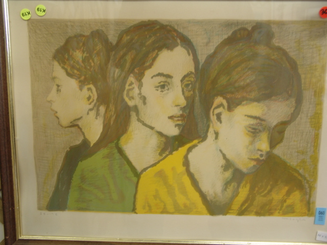 Moses Soyer 1899-1974 THREE WOMEN color lithograph pencil signed lower right M. Soyer, numbered 55 /175. Provenance: personal collection of Sherry and Jack Kneller Alice Hart Kneller and John W. Kneller, a number of them gifts of the Brooklyn arts faculty when he was President of Brooklyn College from 1969 – 1979