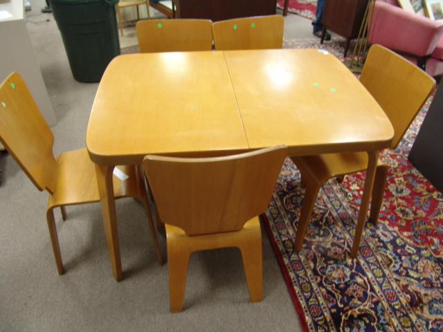 6 piece bent plywood kitchen set marked TJ Molded Plywood Furniture, Rowanoke VA