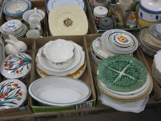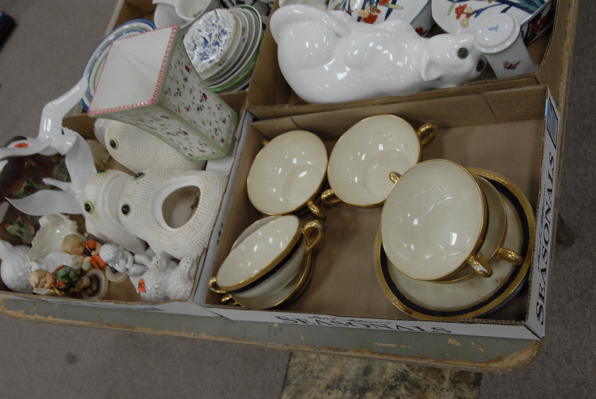 Two box lots to include bullion cups and saucers, frog figure planter, bird figures, Staffordsgire horse, Polar Bear, Rabbit, two Hummels and miscellaneous
