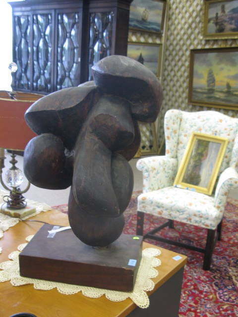 Carved wooden sculpture, Ron Mehlman.Provenance: personal collection of Sherry and Jack Kneller Alice Hart Kneller and John W. Kneller, a number of them gifts of the Brooklyn arts faculty when he was President of Brooklyn College from 1969 – 1979
