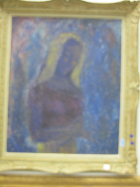 Forbes Whiteside acrylic on silvered paper titled EARTH ICON label on reverse 8th May Show, Cleveland Museum of Art, May 22, 1966. Provenance: personal collection of Sherry and Jack Kneller Alice Hart Kneller and John W. Kneller, a number of them gifts of the Brooklyn arts faculty when he was President of Brooklyn College from 1969 – 1979