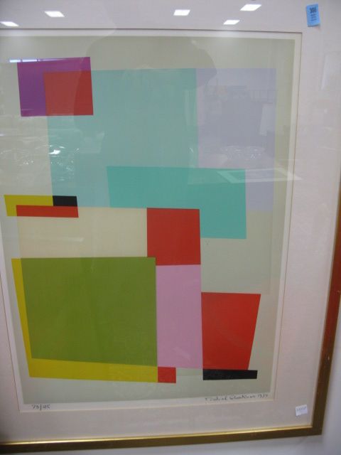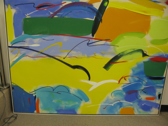 David Sawin oil on canvas, abstract marked to Jack and Sherry Kneller Best Wishes David Sawin, 1977. Provenance: personal collection of Sherry and Jack Kneller Alice Hart Kneller and John W. Kneller, a number of them gifts of the Brooklyn arts faculty when he was President of Brooklyn College from 1969 – 1979