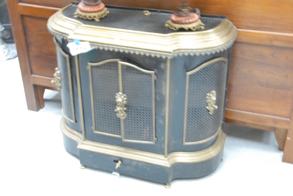 Iron and brass cabinet made from radiator cover.