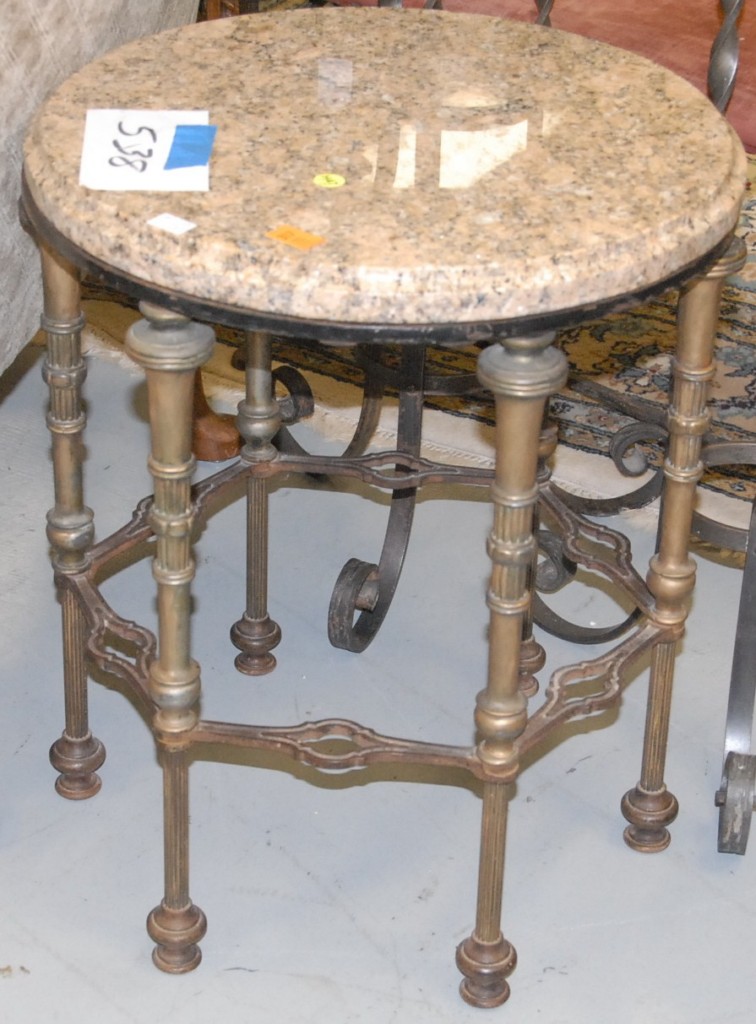 Round marble top stand with metal base.