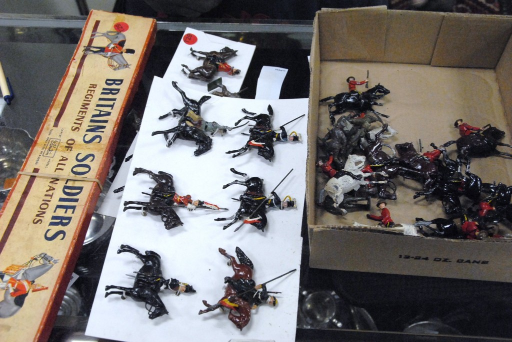 Box lot of lead soldiers including Britains and one original box.