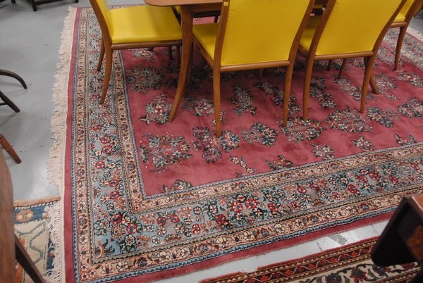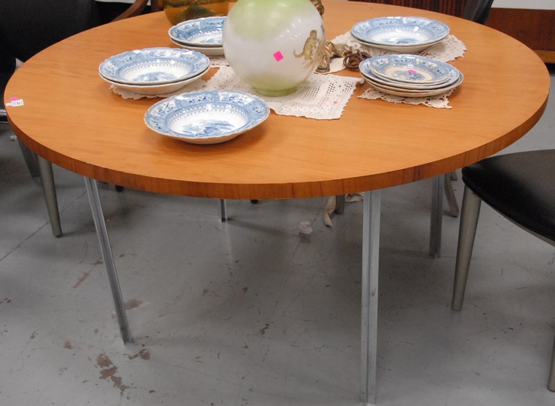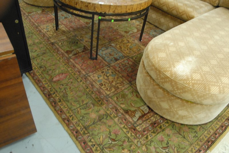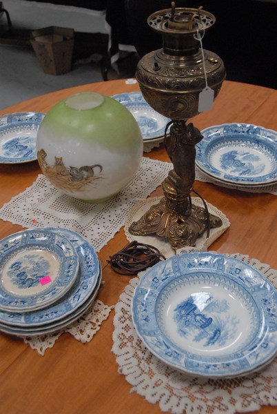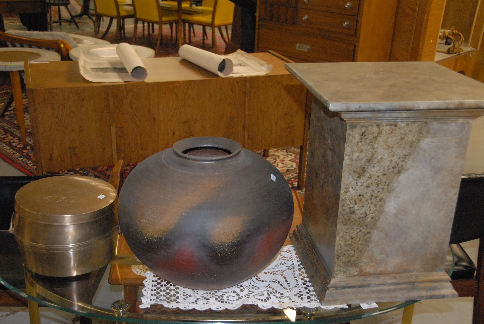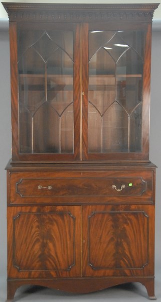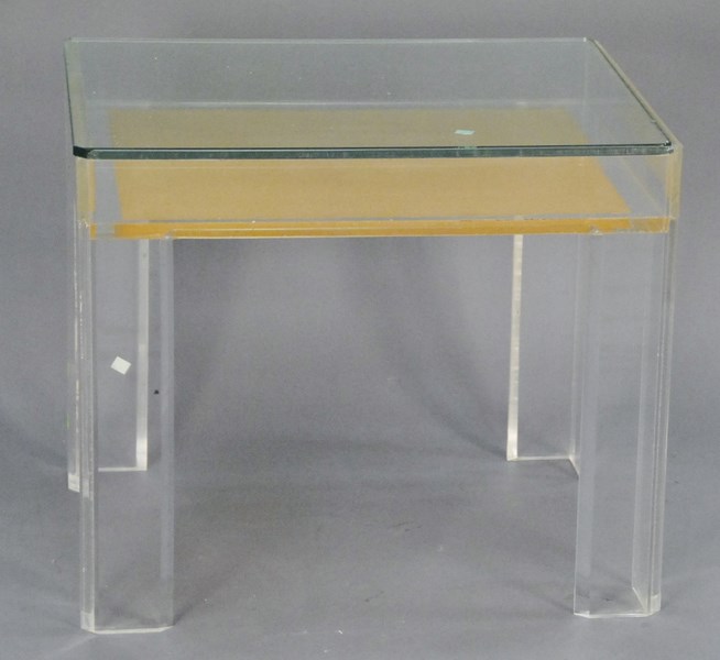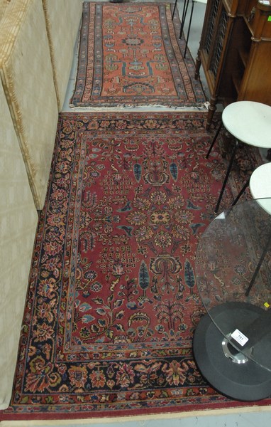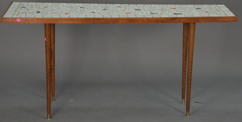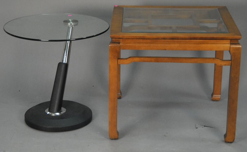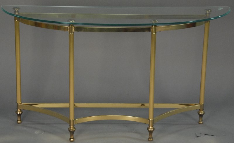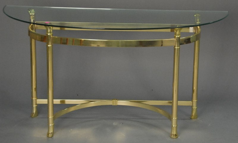 Two piece lot to include brass and glass half round hall table and Queen Anne style hall table, brass table: ht. 25in. wd. 50in. & hall table: ht. 29in. wd. 54in.