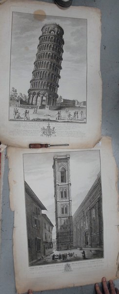 Two engravings by Antonio Verico 1775 Veduta Del Campanile Di Pisa in Toscana and Veduta Del Campanile Della Metropolitana Fiorentina marked in plate Antonio Verico 1816.