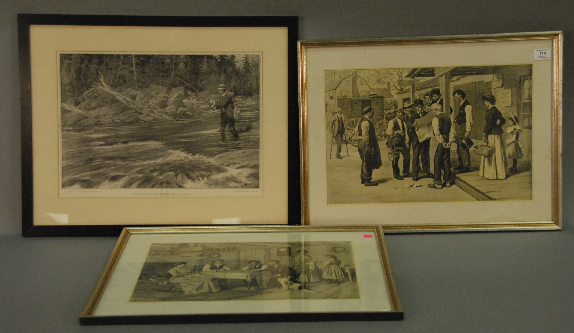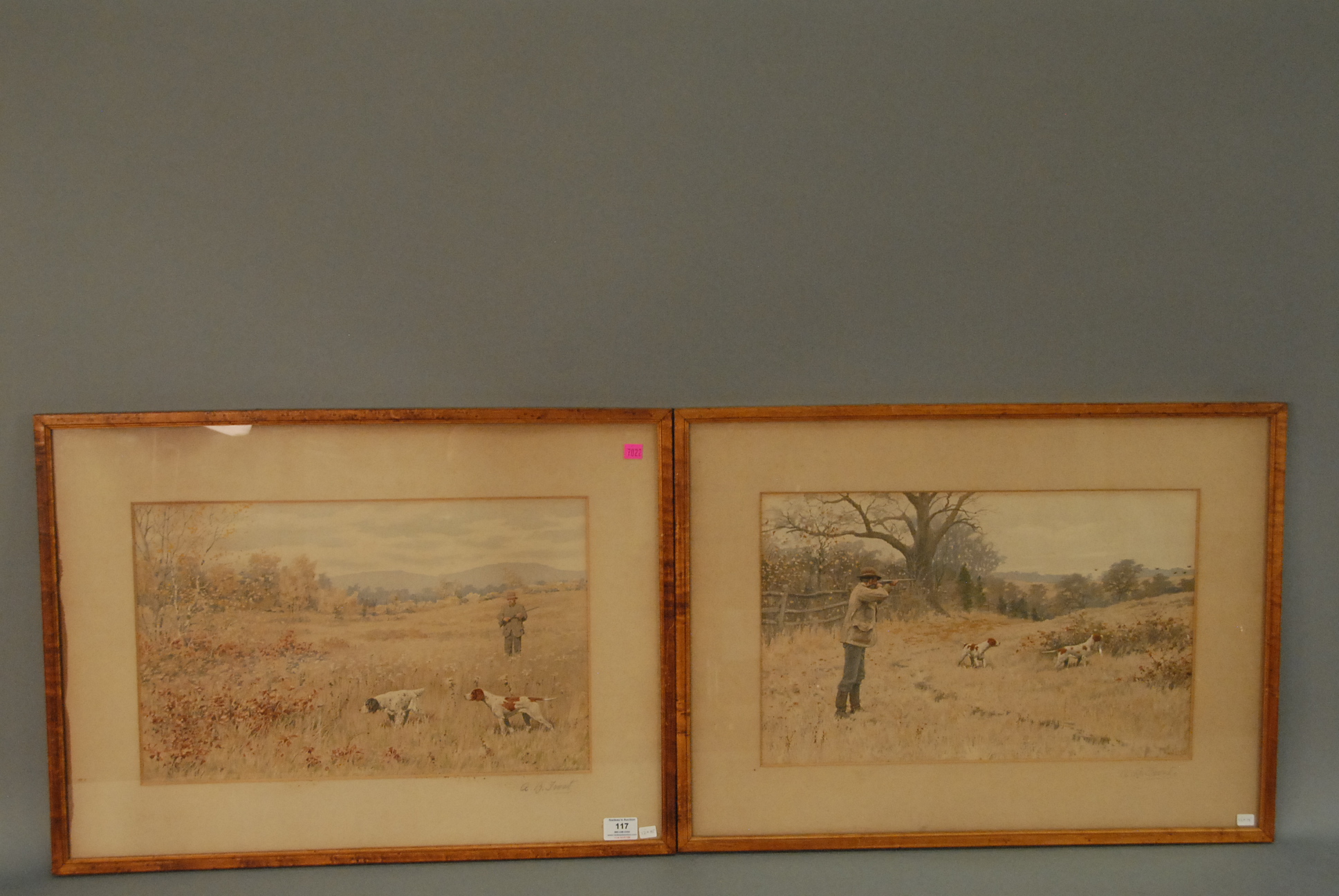 Arthur Burdett Frost pair of lithographs HUNTING pencil signed lower right A. B. Frost, signed in plate A. B. Frost, both in Newcomb Macklin frames, 12 x 19 each.