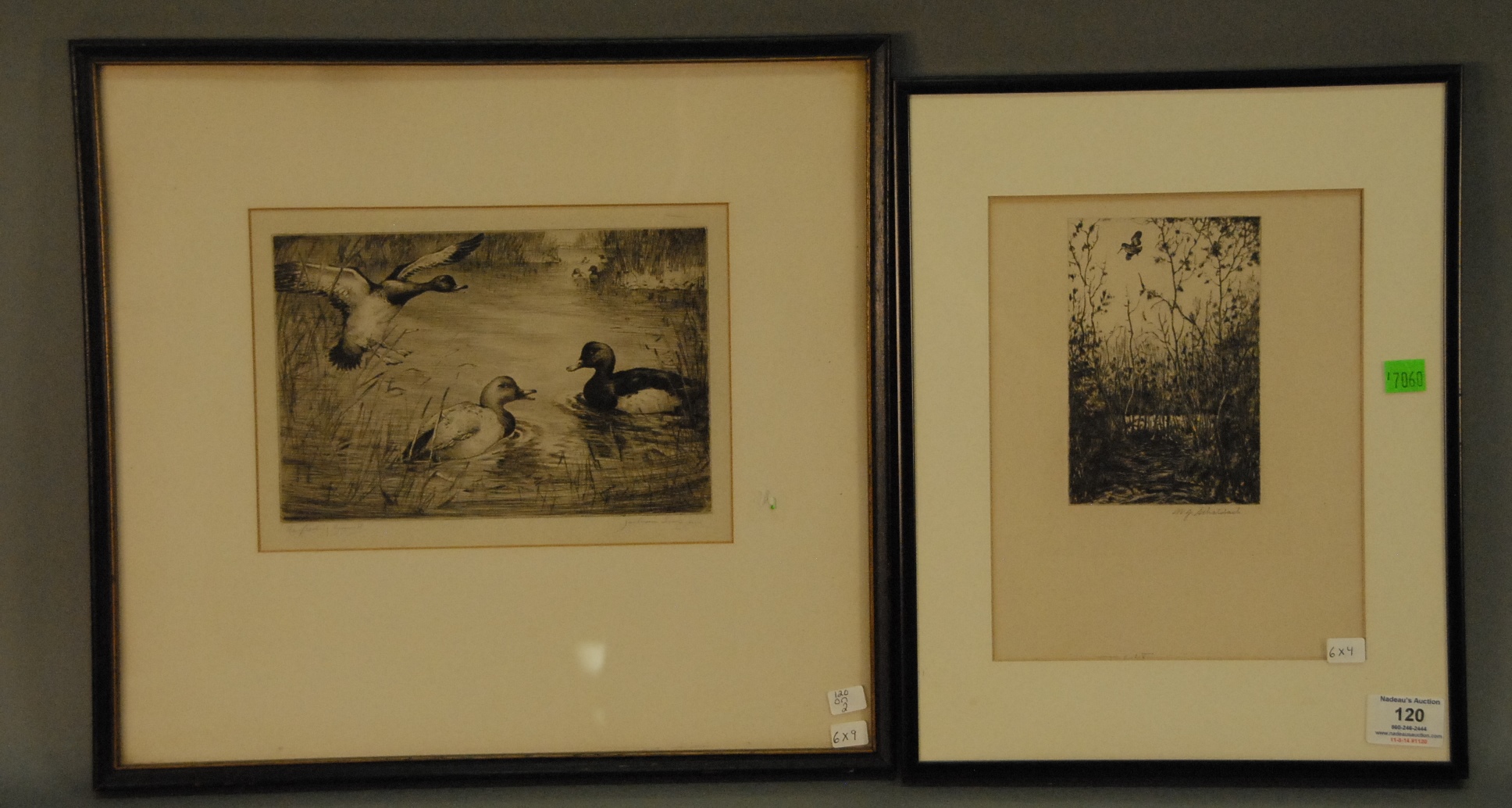 Two etchings including William Joseph Schaldach 1896-1982 FLYING WOODCOCK etching signed lower right W. J. Schaldach and Jackson Simpson 1893-1963 THE FEEDING GROUND etching signed lower right Jackson Simpson.