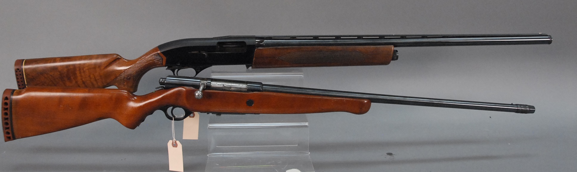 Two piece lot to include Mossberg shotgun model 185D 20 gauge bolt action with 26 barrel no s/n 432 and Winchester shotgun, model 1400 MKII 12 gauge semi-automatic with 28 barrel as is s/n 408808 433.