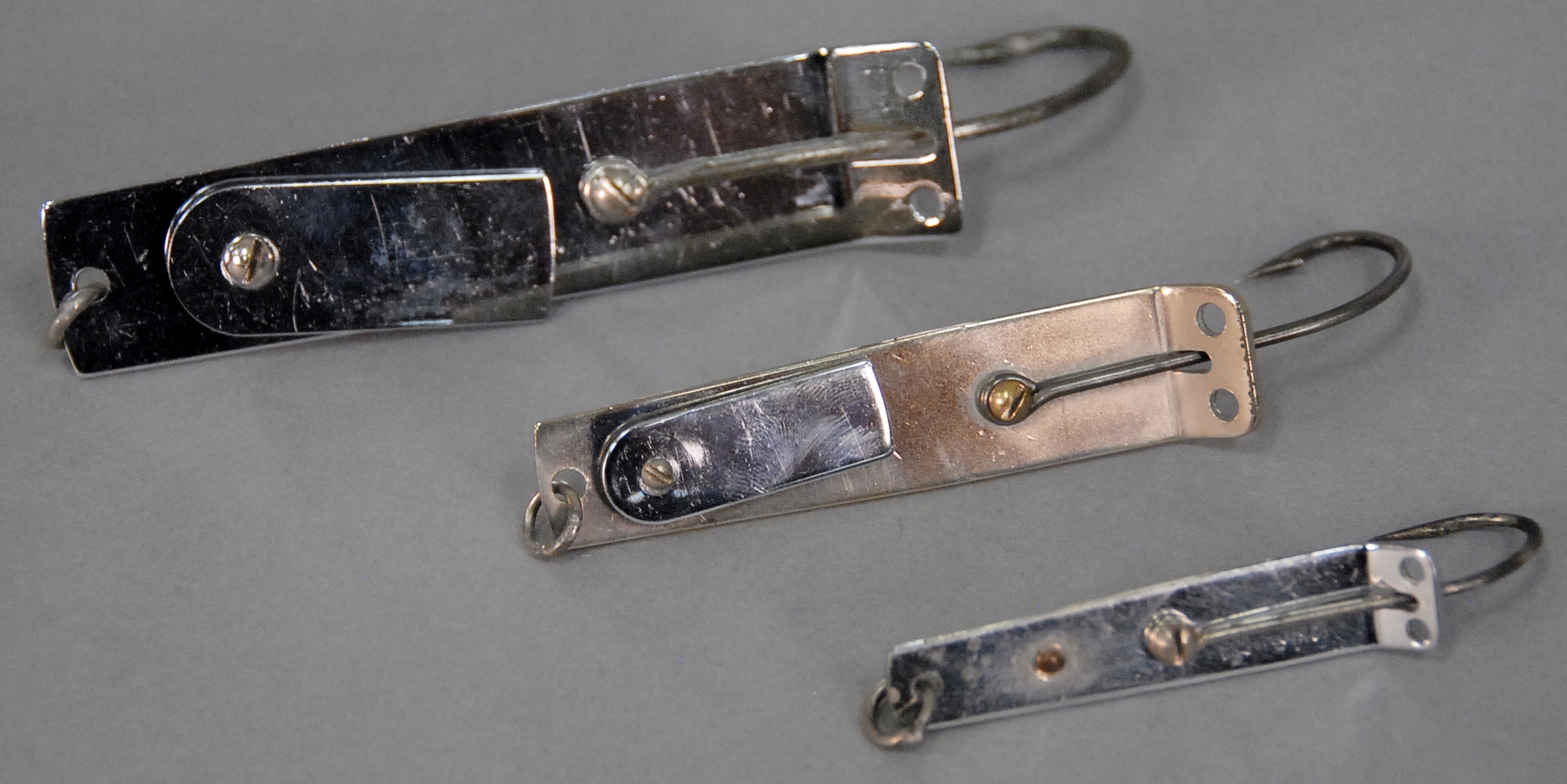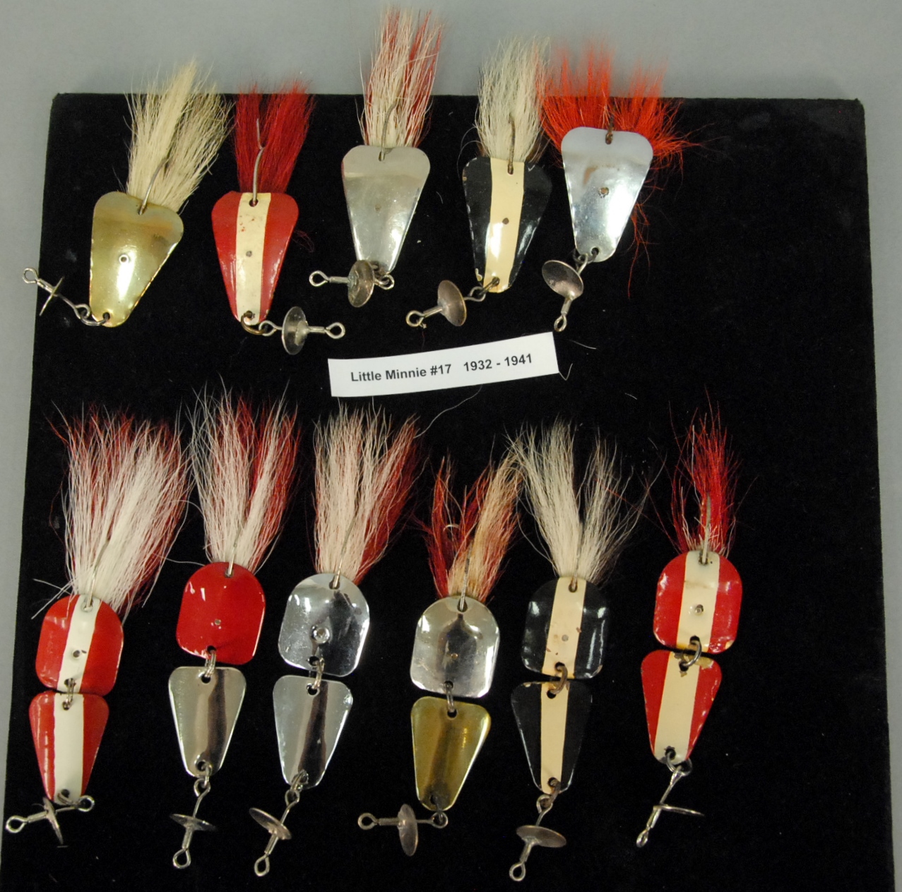 Group of eleven Al Foss Lures to include five Little Minnie #17 1932-1941 and six Minnie the Moocher #16 1932-1941, all nickel, brass, red, black, or white.