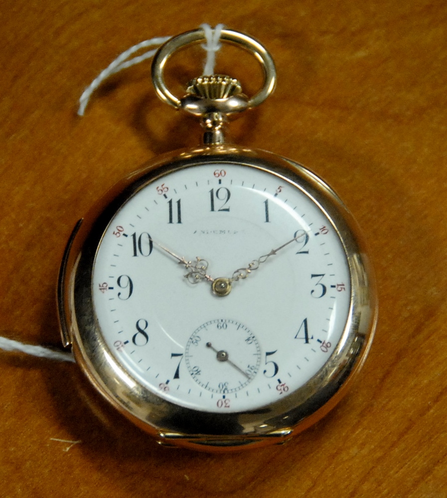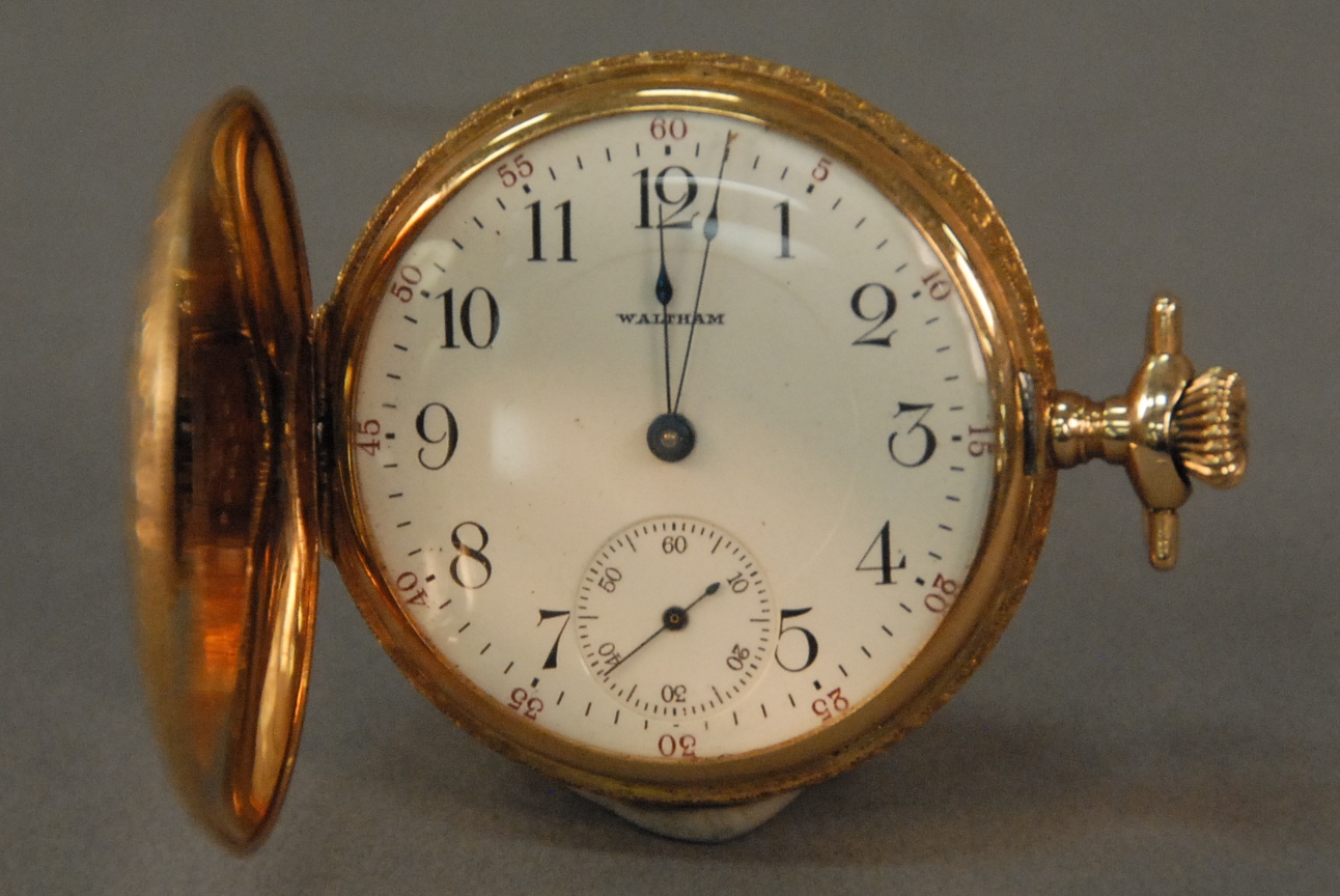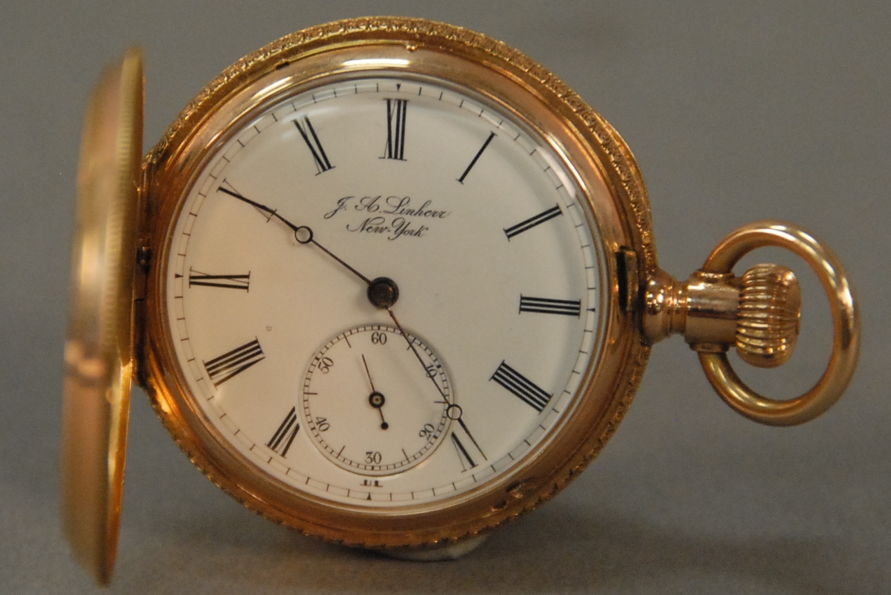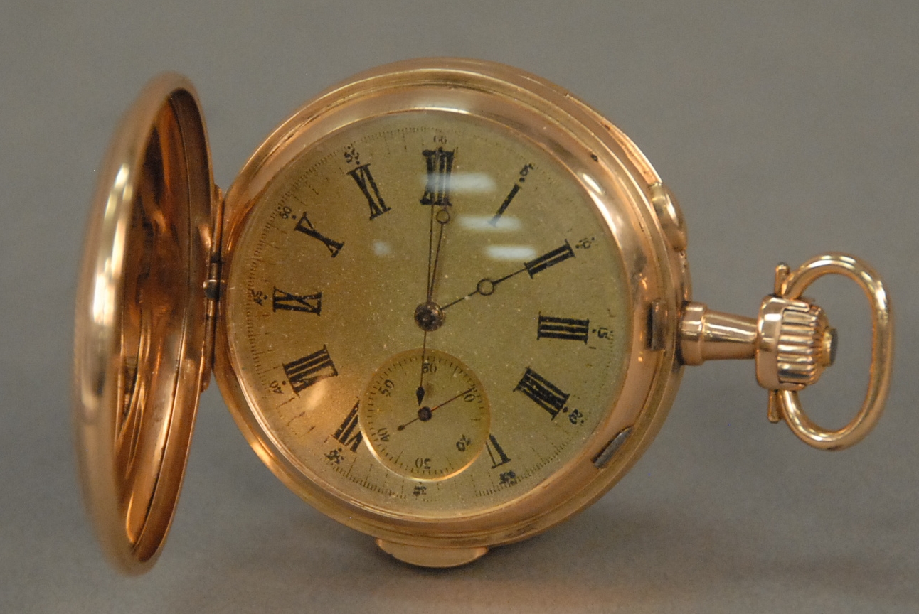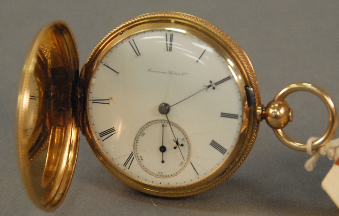 American 18K gold closed face pocket watch, works marked Appleton Tracy Co. Waltham Mass, key wind with key, circa 1865 dial with hairline. 78 grams total weight