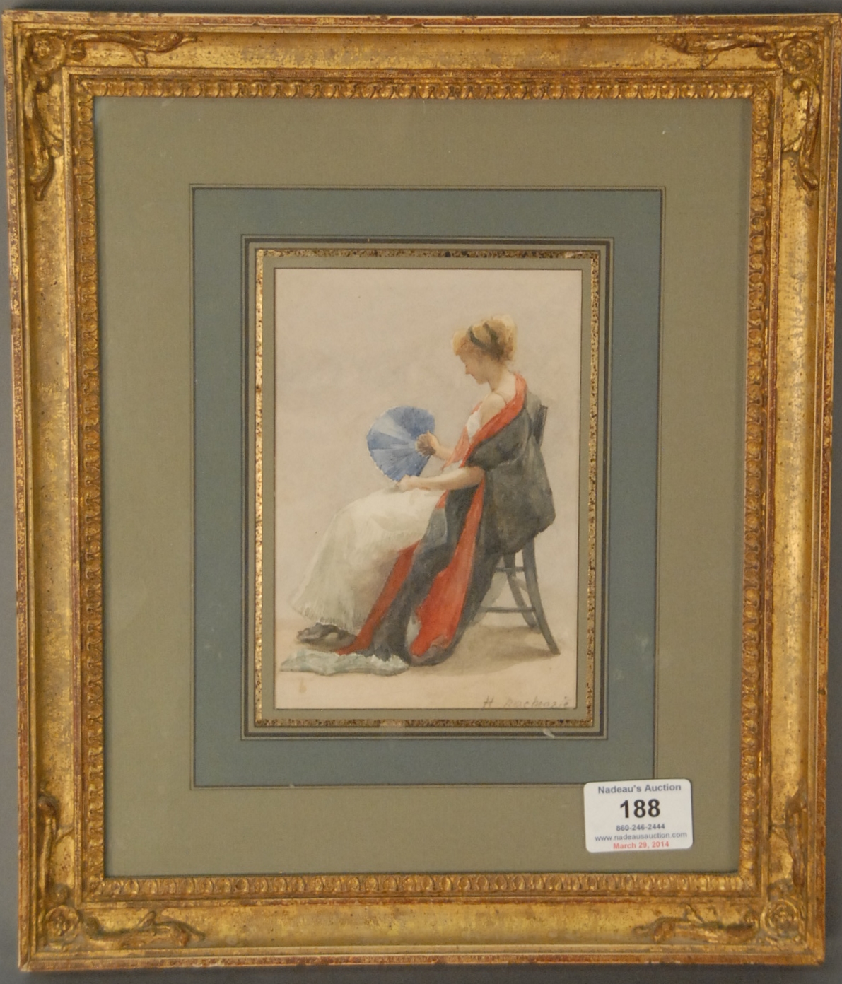 American or English School late 19th/early 20th century GIRL WITH A FAN watercolor on paper signed lower right H. Mackenzie sight size 6 x 4, framed 13 x 11