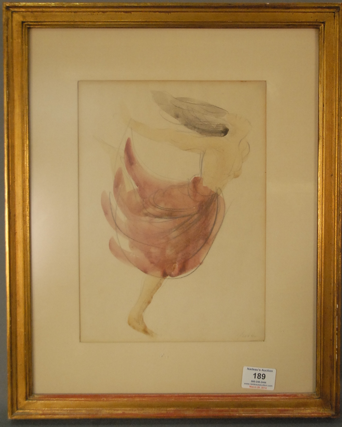 Circle of Auguste Rodin French, 1840-1917 GIRL watercolor and pencil on paper signed in pencil lower right Rodin sight size 11 1/2 x 8 1/4, framed 18 x 15