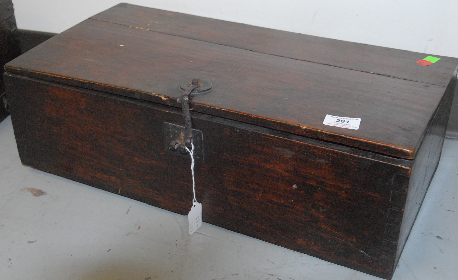 Small wooden chest Bandaji with tray and two compartments, iron hardware and secret bottom side drawer, missing lower iron fastening plate, Korea, Joseon Dynasty, 19th century. ht. 8in. lg. 20in. wd. 6in.