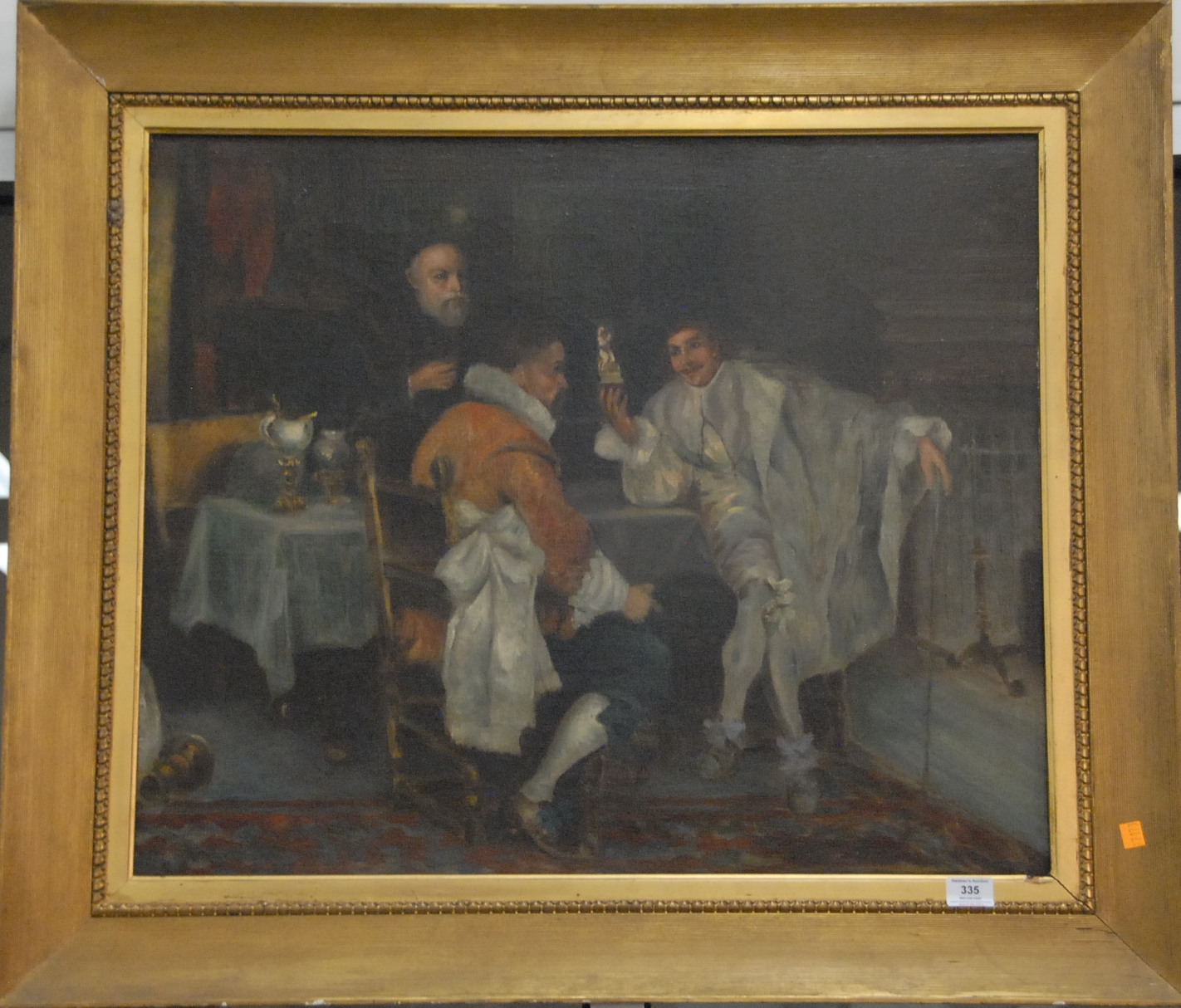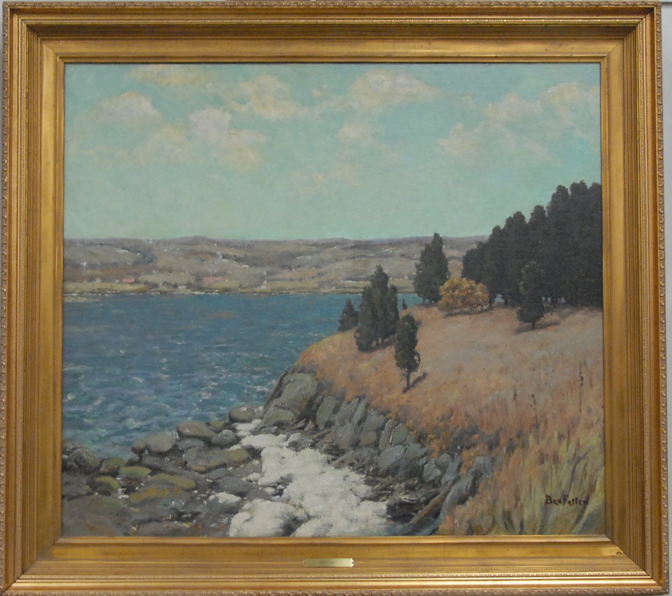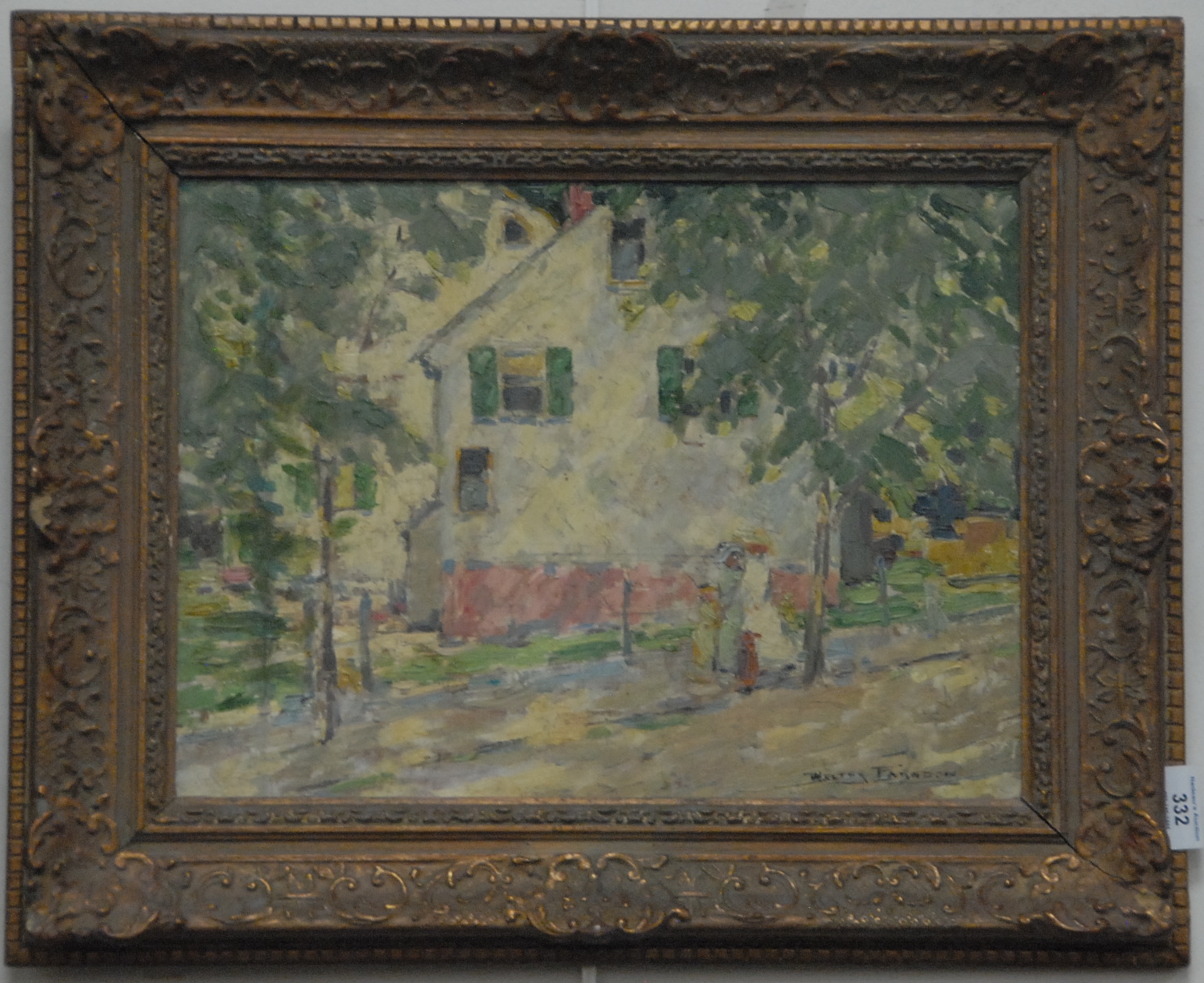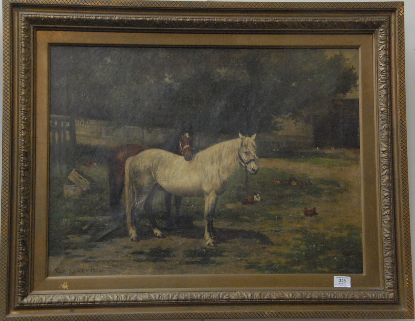 GENERAL GEORGE WASHINGTON AT DORCHESTER HEIGHTS, MARCH, 1776 oil on canvas unsigned copy of the famous painting done by Gilbert Stuart in 1806 full portrait of George Washington with his hand on the rear of his horse. ‘Horn’ in white chalk verso also faint name in pencil 19th century in black molded frame with gilt liner image size: 37 1/8 x 27 1/8 overall size: 41 3/4 x 31 5/8
