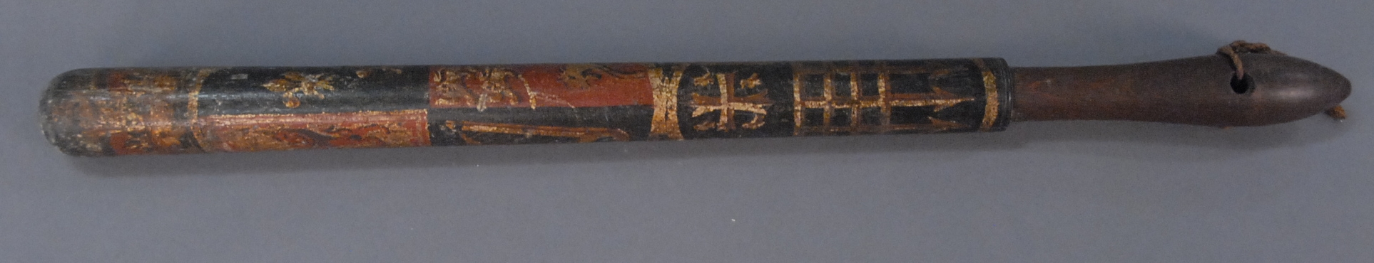 Night stick with original paint decoration and coat of arms with lions and horse, initialed GII R, late 18th early 19th century, probably English. lg. 24in.