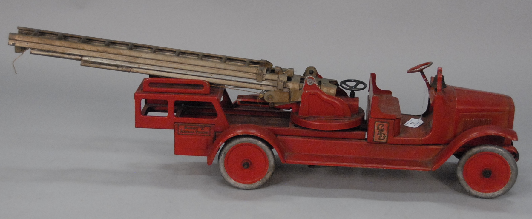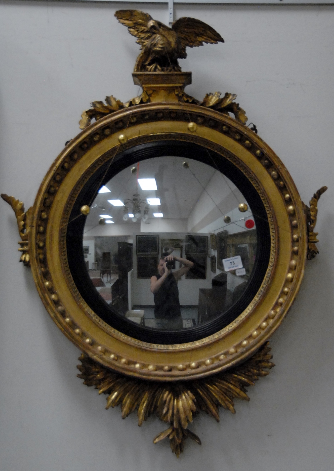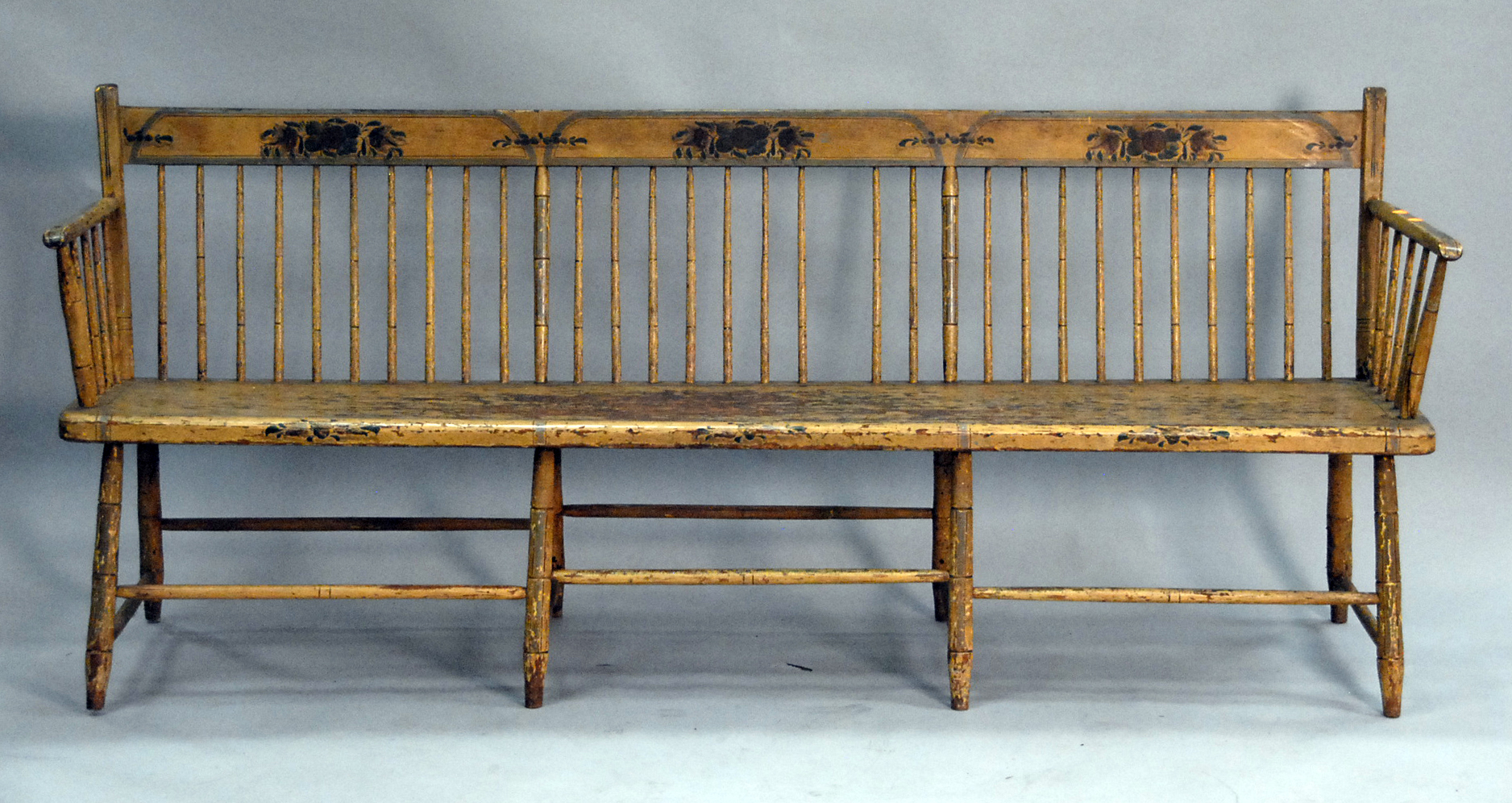 Four piece lot to include pair of Federal steeple top andirons with bead decoration with ball feet along with two brass top tools. ht. of andirons 23 1/2in.
