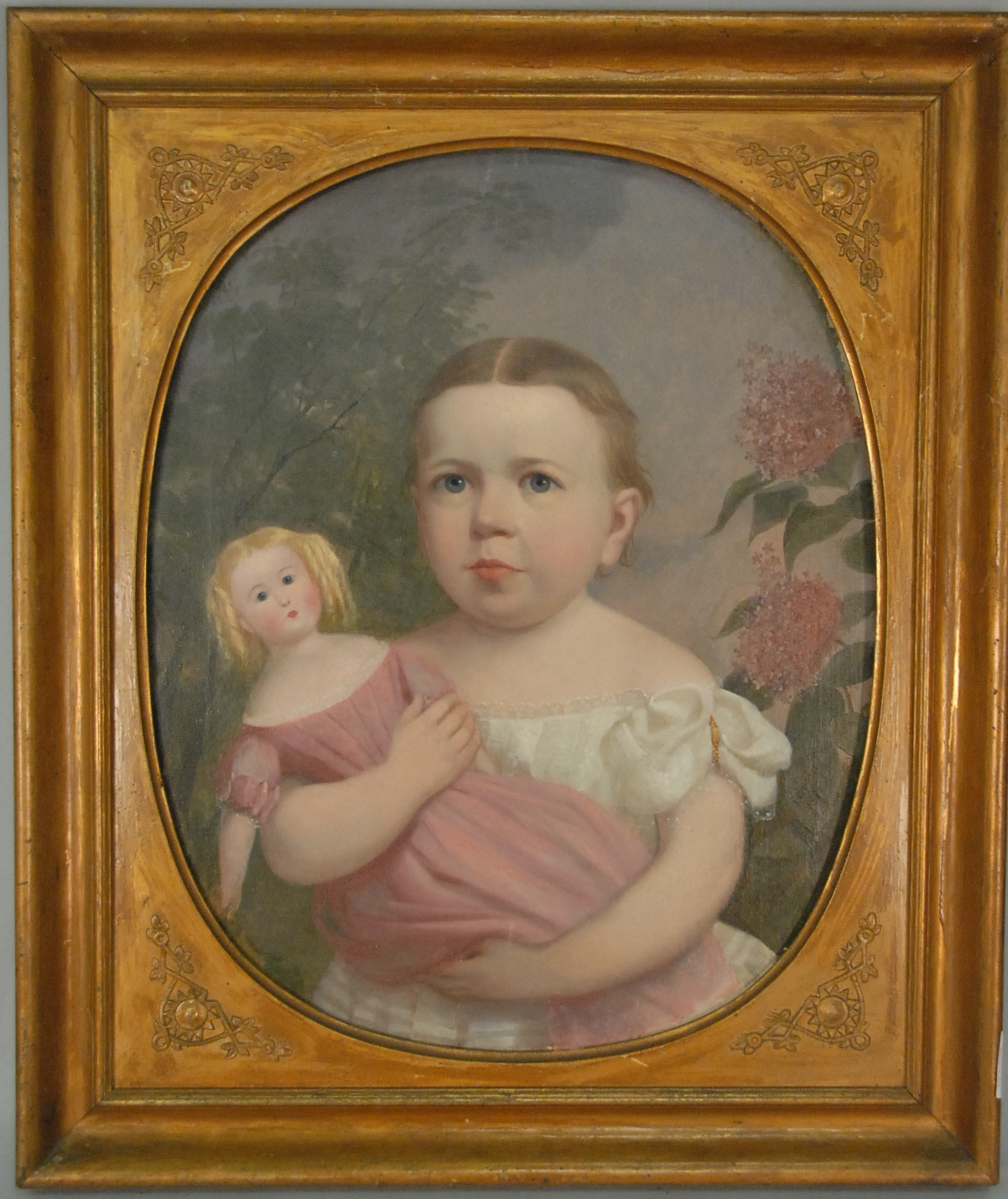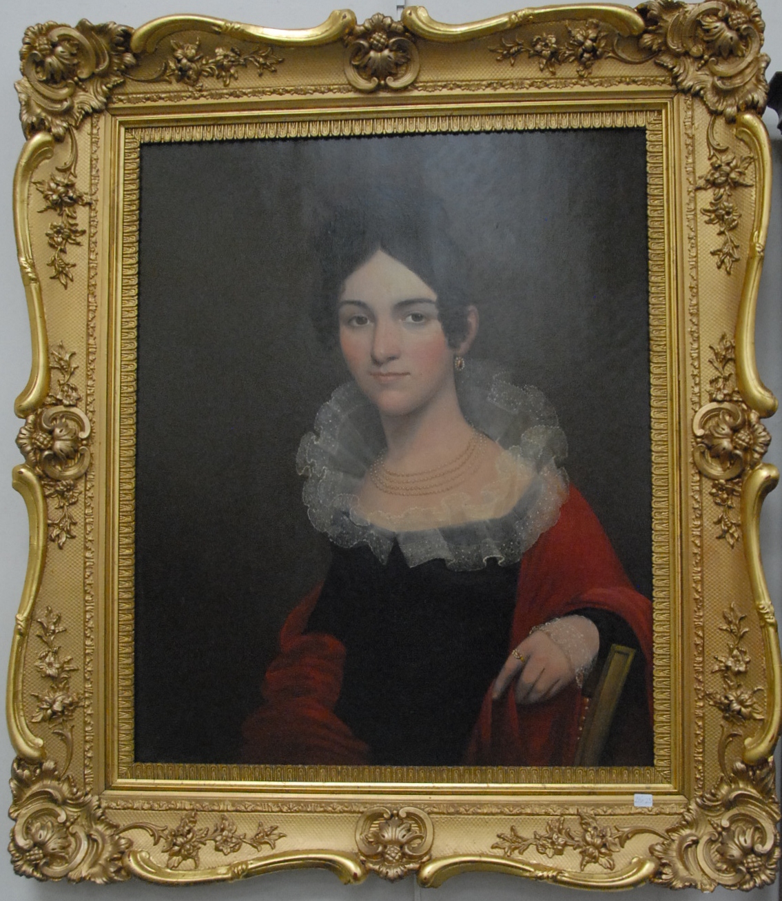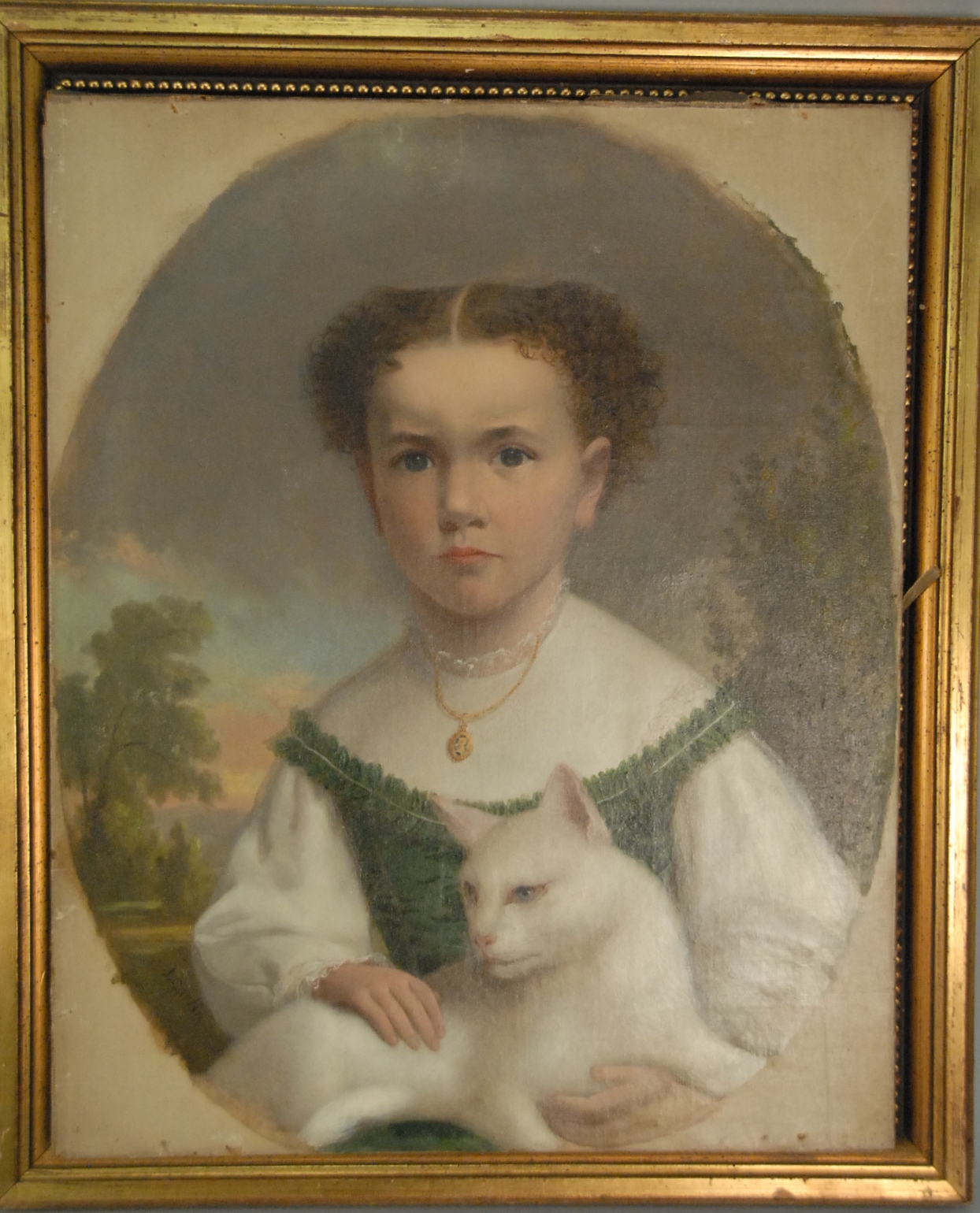 Pair of paintings by Henry Ulke German/Washington, D.C. 1821-1910 Each is a bust of young woman watercolor on paper unsigned one marked on original matting Henry Ulke one having old paper label on reverse of frame which reads Margaud Ellen Morton Ma’s sister about two years younger one having old paper label on reverse of frame which reads My Grandmother Cathraine McPherson Morton, Holland Pt., MD sight size 13 1/4 x 10 ,sight size 14 x 10 1/2