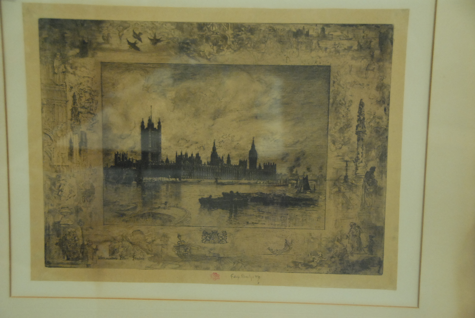 Felix Buhot 1847-1898 WESTMINSTER PALACE, LONDON etching / drypoint signed in plate lower center with artist stamp and pencil Felix Buhot 11 7/16 x 16 5/8
