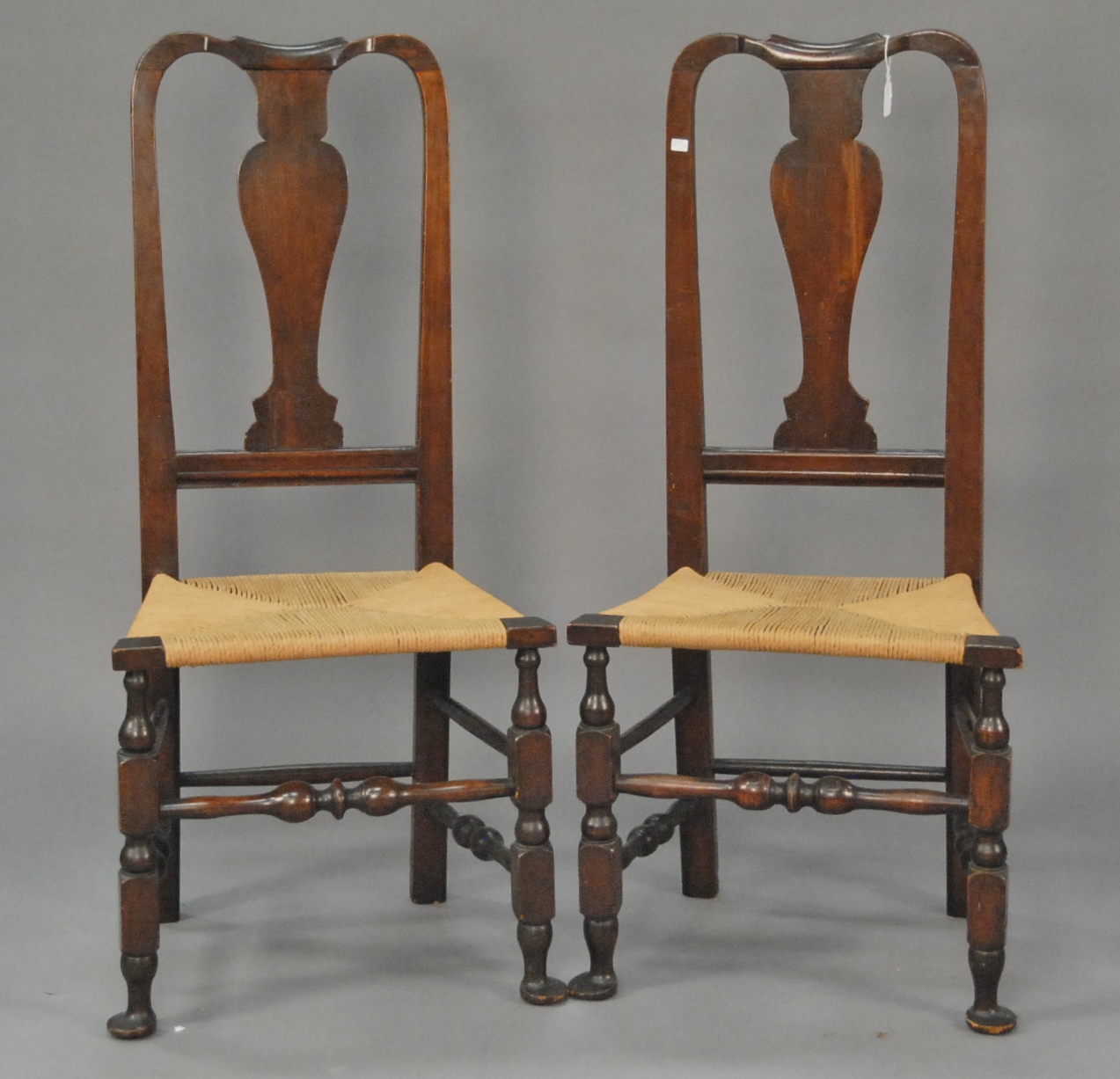 E. B. Tracy bowback side chair with brace back on bold turned legs, signed on bottom E. B. Tracy seat repaired. seat ht. 18 in. Provenance: Property from the Estate of Elizabeth and Edward Wallace of The Tracy House in Meriden, Connecticut.