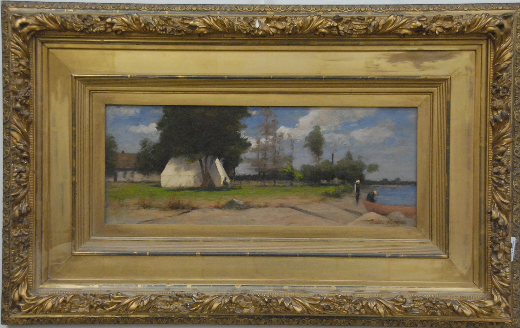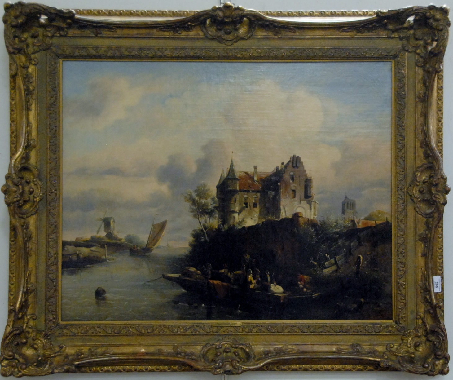 Salomon Leonardus Verveer 1813-1876 DAN HAAG, SUMMER DUTCH WATERFRONT oil on canvas signed lower right EL Verveer 25 x 31 3/4 Provenance: Property from The Estate of Elizabeth Tishler of Middletown, Connecticut.