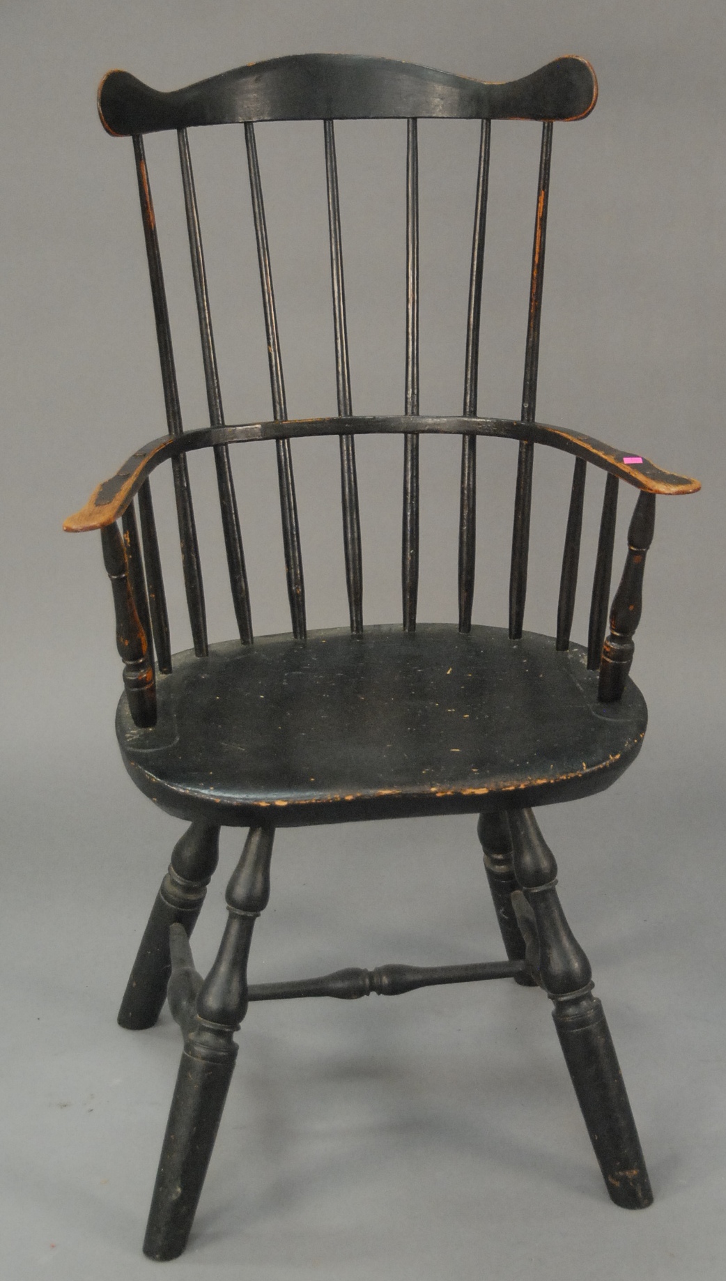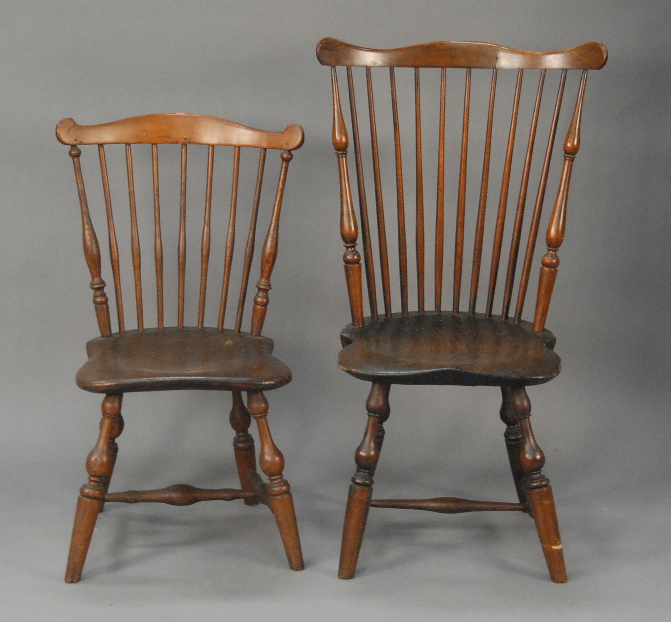 Two Tracy fan back Windsor side chairs with bold turned supports and legs, one signed E. Tracy, other signed E. B. Tracy. seat ht. 17 in. & seat ht. 15 3/4 in. Provenance: Property from the Estate of Elizabeth and Edward Wallace of The Tracy House in Meriden, Connecticut.