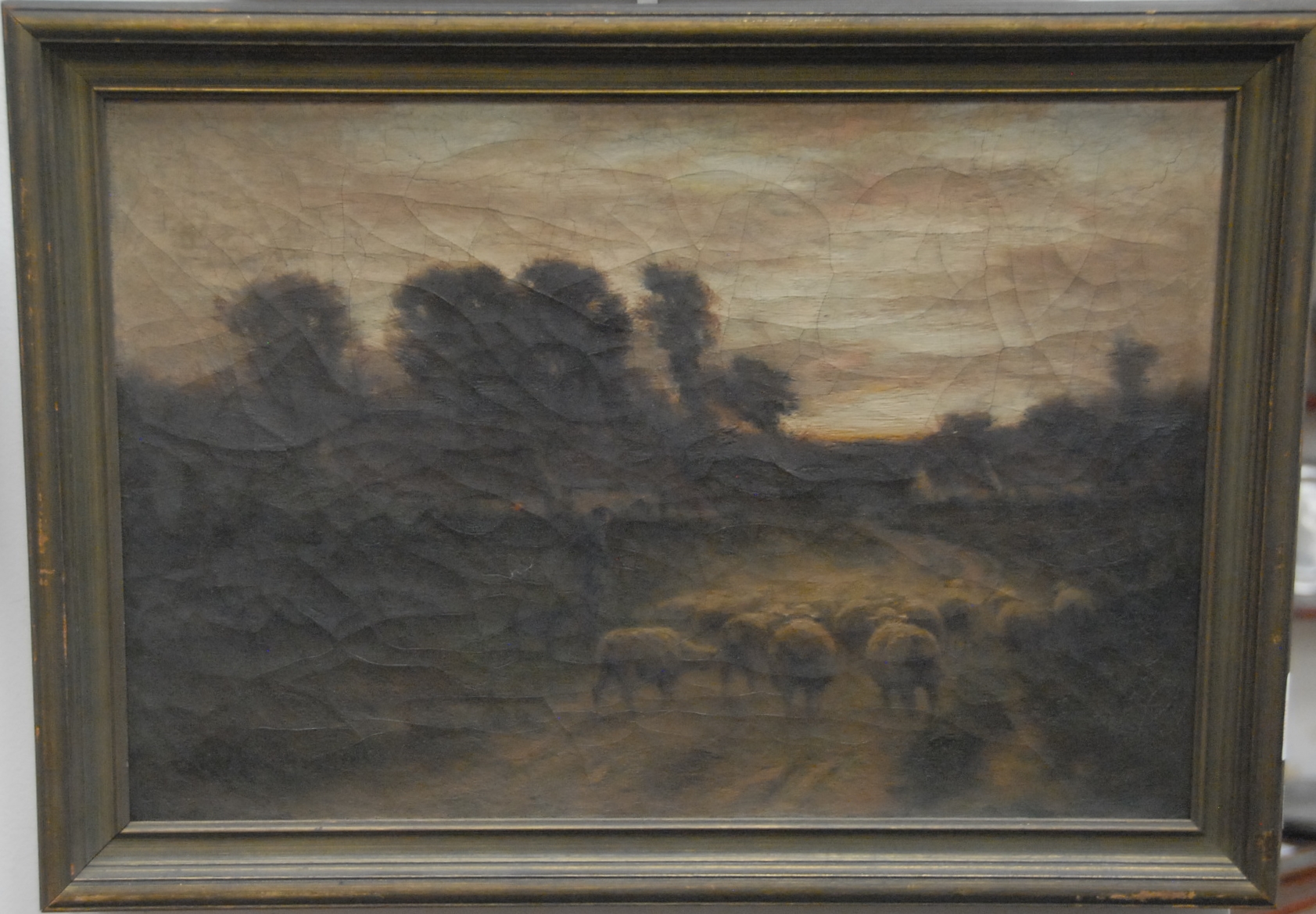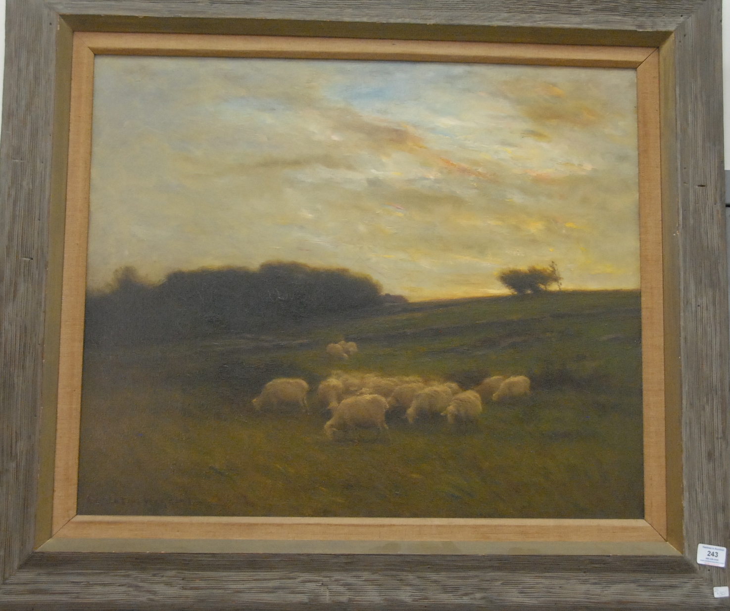 Carleton Wiggins 1848-1932 THE EVENING HOURS oil on canvas signed lower left Carleton Wiggins titled and signed on reverse Central Art Gallery label on back 25 x 30