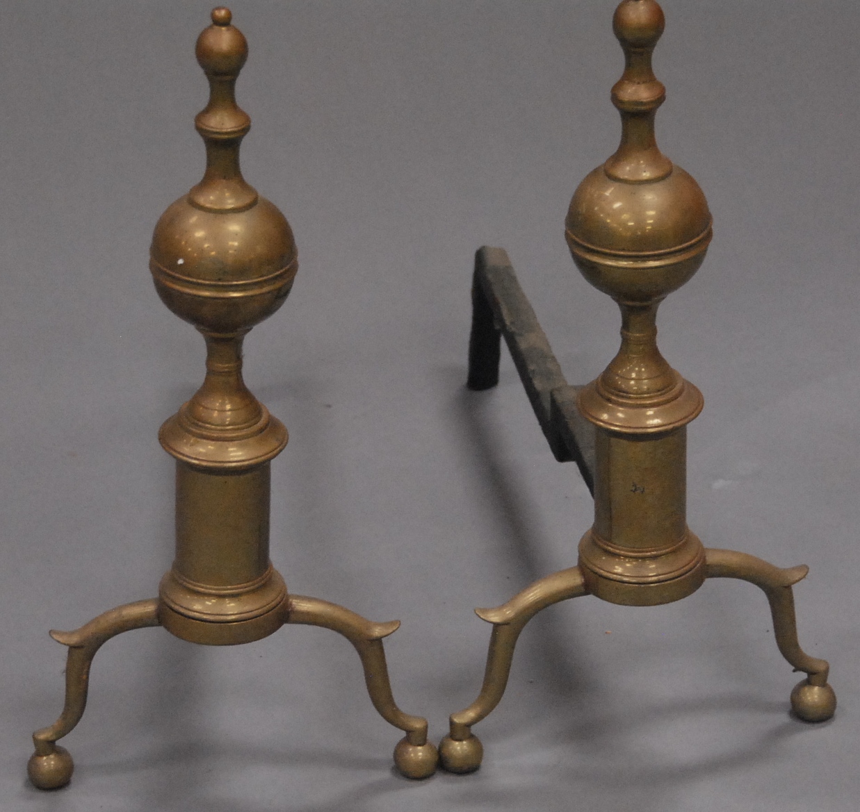 Pair of Federal brass andirons with double lemon tops signed Phillip N. York. ht. 25 in. Provenance: Property from a Private Collection Sold for the Benefit of the Virginia Historical Society.
