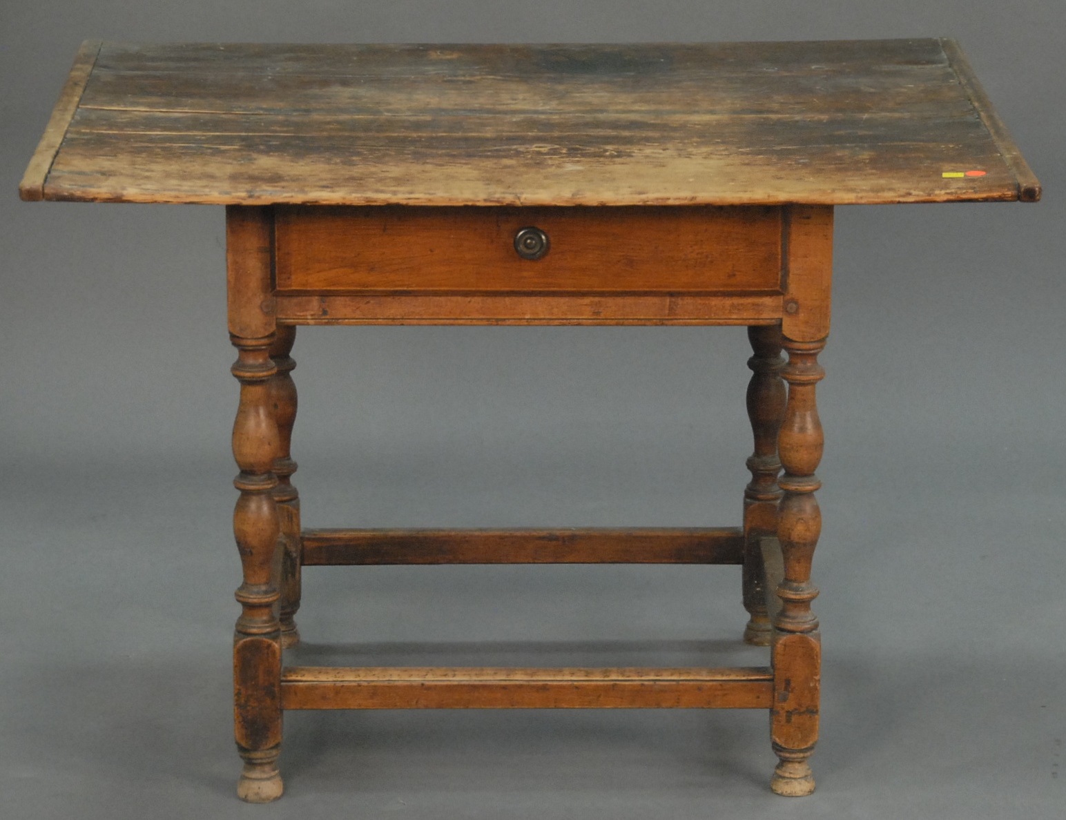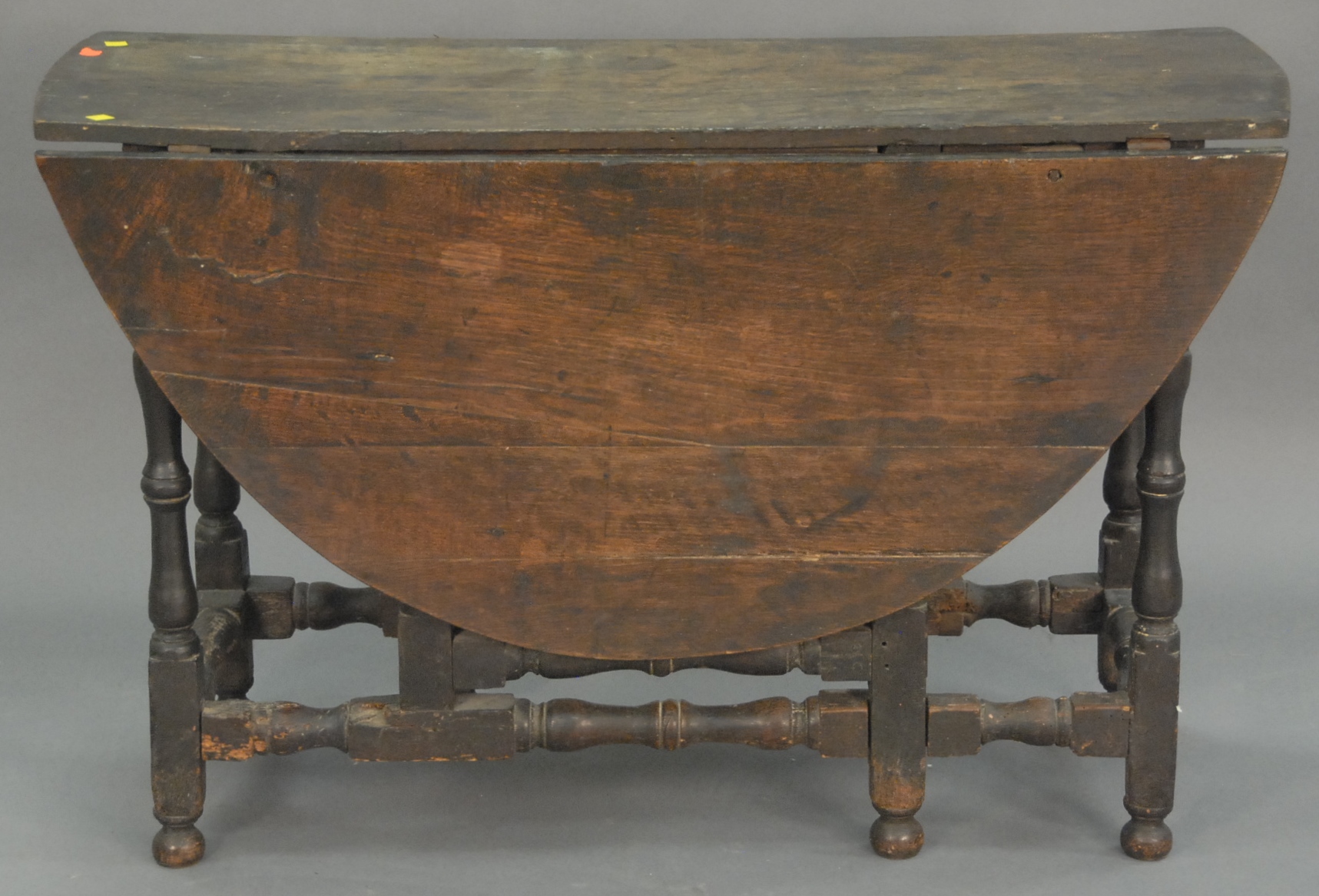 Oak gateleg table with oval drop leaves on block and turned legs, 17th century. ht. 29 1/2 in. lg. 55 1/2 in. wd. 46 in. Provenance: Property from The Estate of Margaret Oliphant of Old Lyme, Connecticut