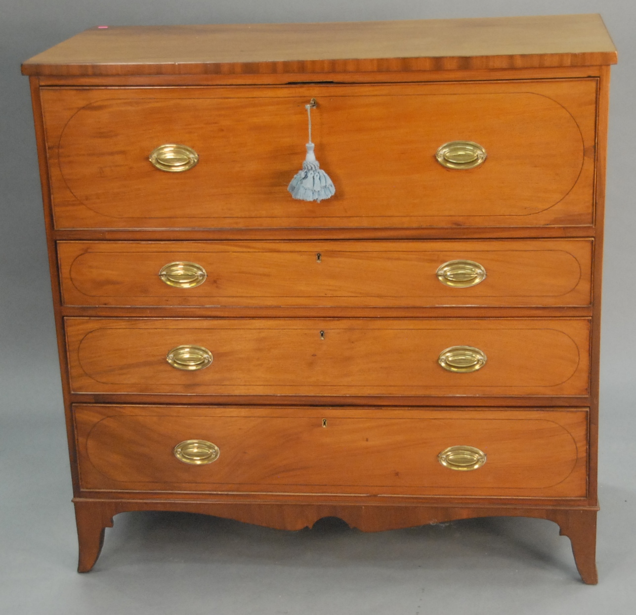 Federal mahogany butler’s desk having desk drawer top over three drawers set on French feet, circa 1790-1810. ht. 44 1/2 in. wd. 44 in. Provenance: Property from The Estate of W. Scott Van Alstyne of Essex, Connecticut.