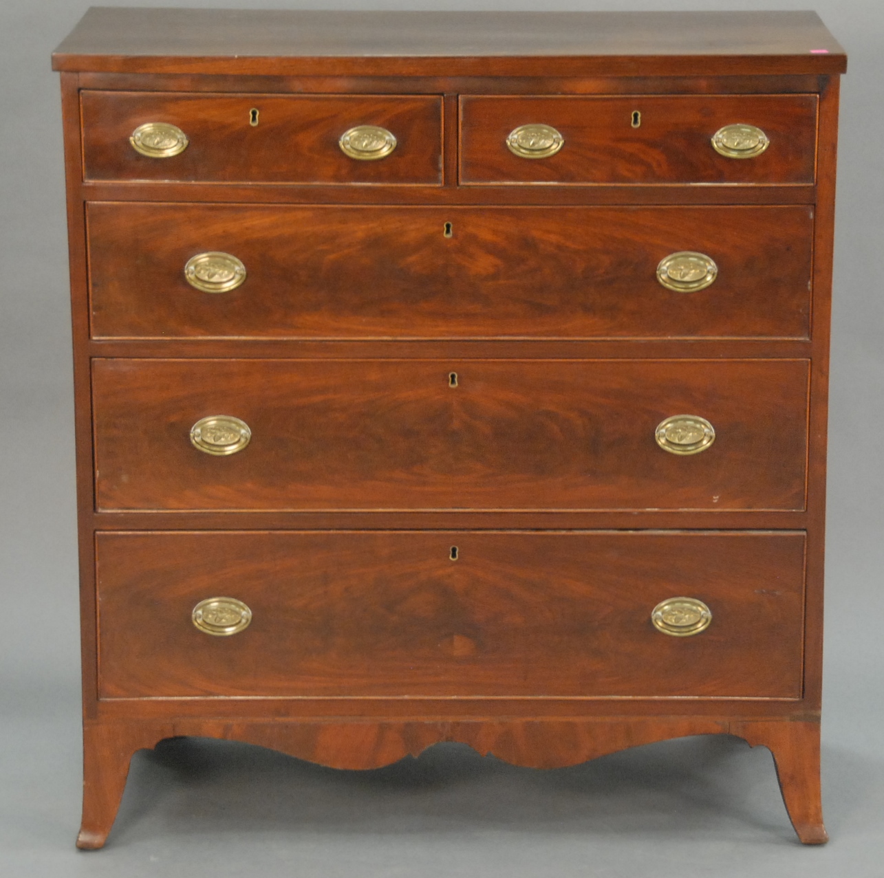 Federal mahogany chest with two short drawers over three long drawers with scalloped apron set on French feet, circa 1790-1810. ht. 41 in. wd. 38 in. dp. 18 in. Provenance: Property from The Estate of W. Scott Van Alstyne of Essex, Connecticut.
