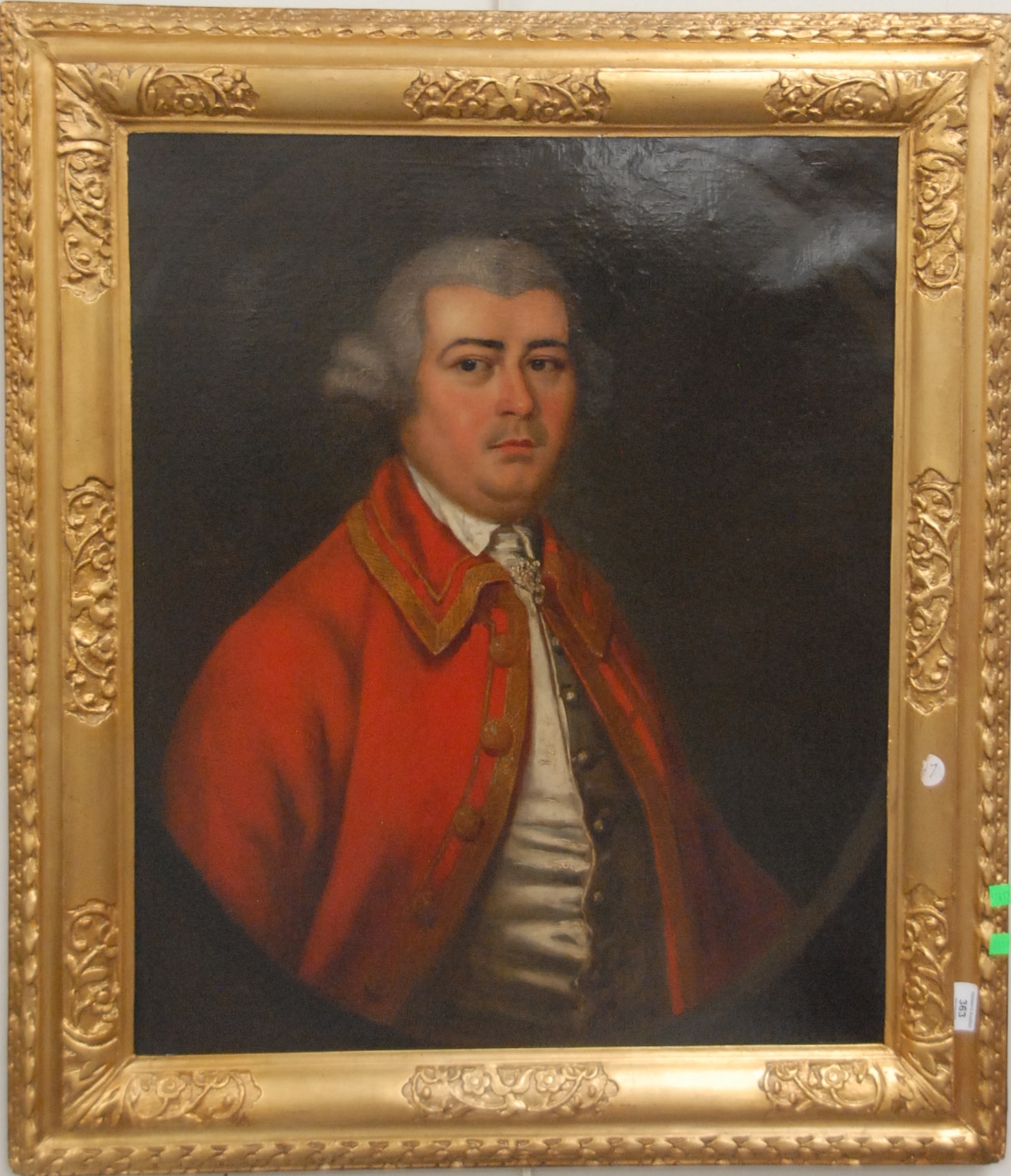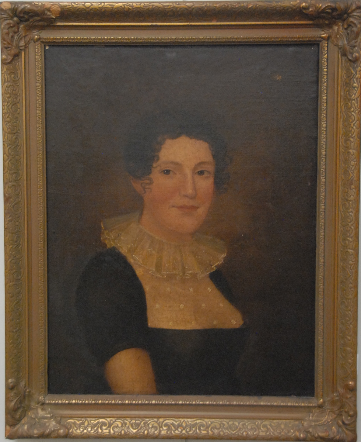 Charles W. Wright Pair of Portraits MAN IN UNIFORM and BUST OF WOMAN oil on canvas signed lower right Chas W. Wright Both in gold frames restretched and relined 26 1/4 x 22 Provenance: Property from The Estate of Margaret Oliphant of Old Lyme, Connecticut