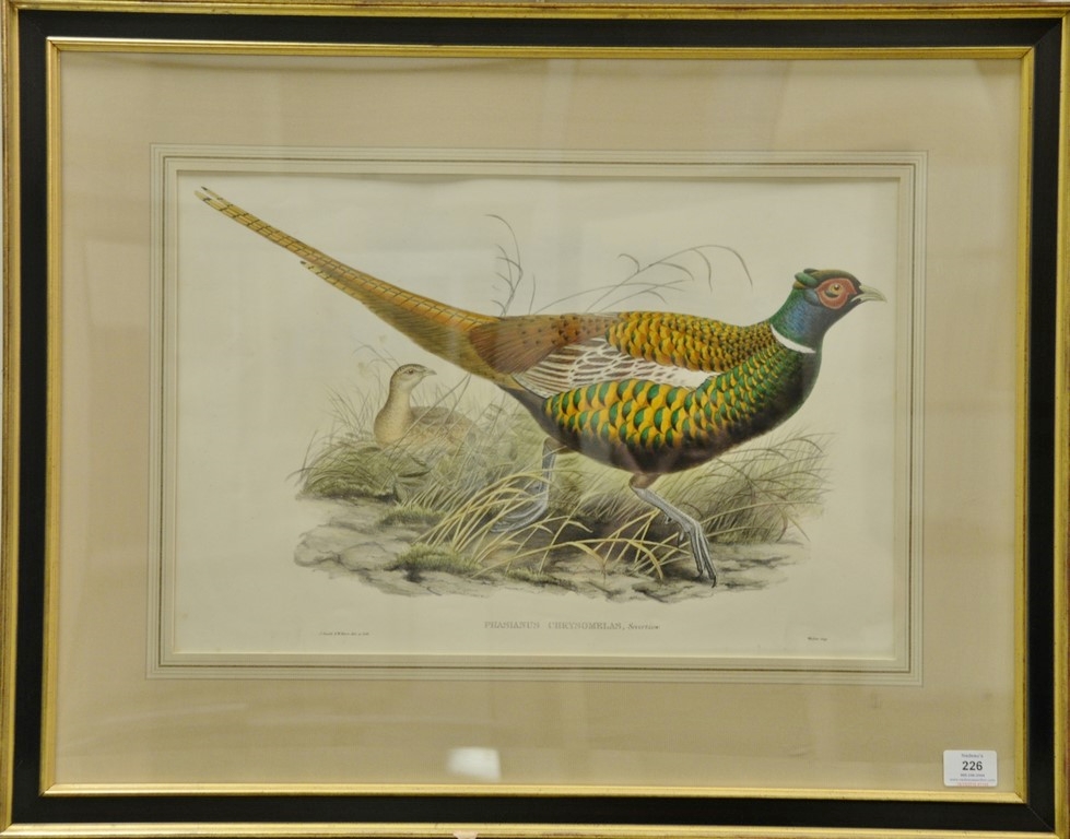 John Gould 1804-1881, pair of hand colored lithographs, Phasianus Chrysomelas, sight size 14 x 21 and Phasianus Shawi, sight size 14 x 21 Provenance: Property from Credit Suisse’s Americana Collection