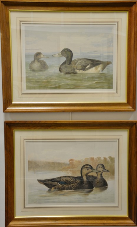 Alexander Pope Jr. 1849-1942, set of eight chromolithographs, from Upland Game Birds and Waterfowl of the United States, The Brandt, The Mallard Duck, The Widgeon, The Black Duck, Canvas-Backed Duck, Buffle-Headed Duck, The Bluebill/Scaup Duck, Wood Duck, sight size 15 x 21 Provenance: Property from Credit Suisse’s Americana Collection