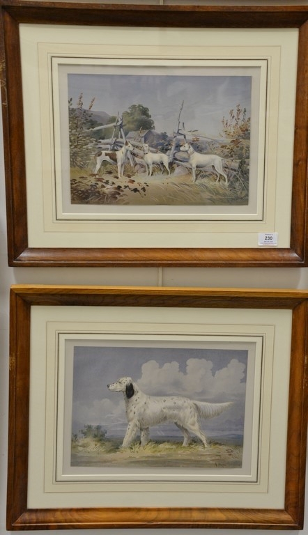 Alexander Pope Jr. 1849-1942, set of six chromolithographs, from Celebrated Dogs of America, Fox Hounds Bau, Imported Champion Pointer Beagles Spider, Grabb & Nellie, Bull Terriers Dash III, English Setter Paris, Llewellin Setter, sight size 11 x 15 Provenance: Property from Credit Suisse’s Americana Collection