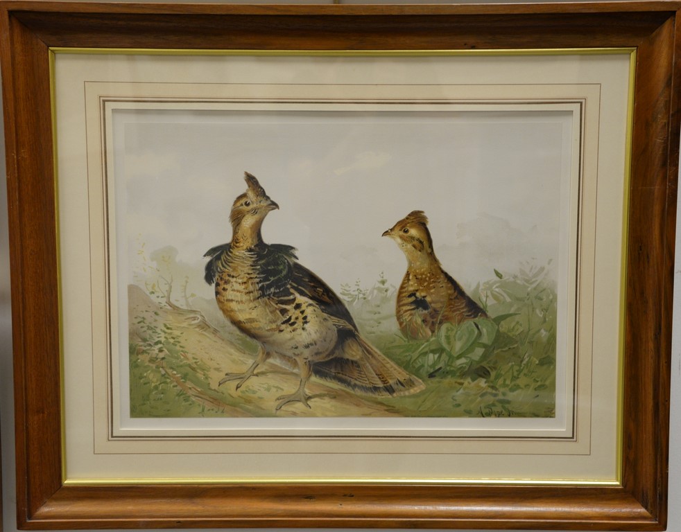 Alexander Pope Jr. 1849-1942, set of five chromolithographs, from Upland Game Birds and Waterfowl of the United States, Canada Grouse The American Quail The Ruffed Grouse The Canada Grouse Pinnated Grouse, Framed by Wesley Allen Framemakers, sight size 15 x 21 Provenance: Property from Credit Suisse’s Americana Collection
