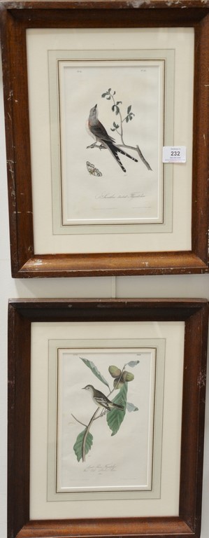 Set of six Audubon prints Drawn from nature by J.J. Audubon printed by J.T. Bowen, Philadelphia hand colored lithographs Arkansa Flycatcher American Redstart Swallow-tailed Flycatcher Blue-grey flycatcher Least Pewee Flycatcher Great Crested Flycatcher, sight size 9 1/2 x 6 Provenance: Property from Credit Suisse’s Americana Collection