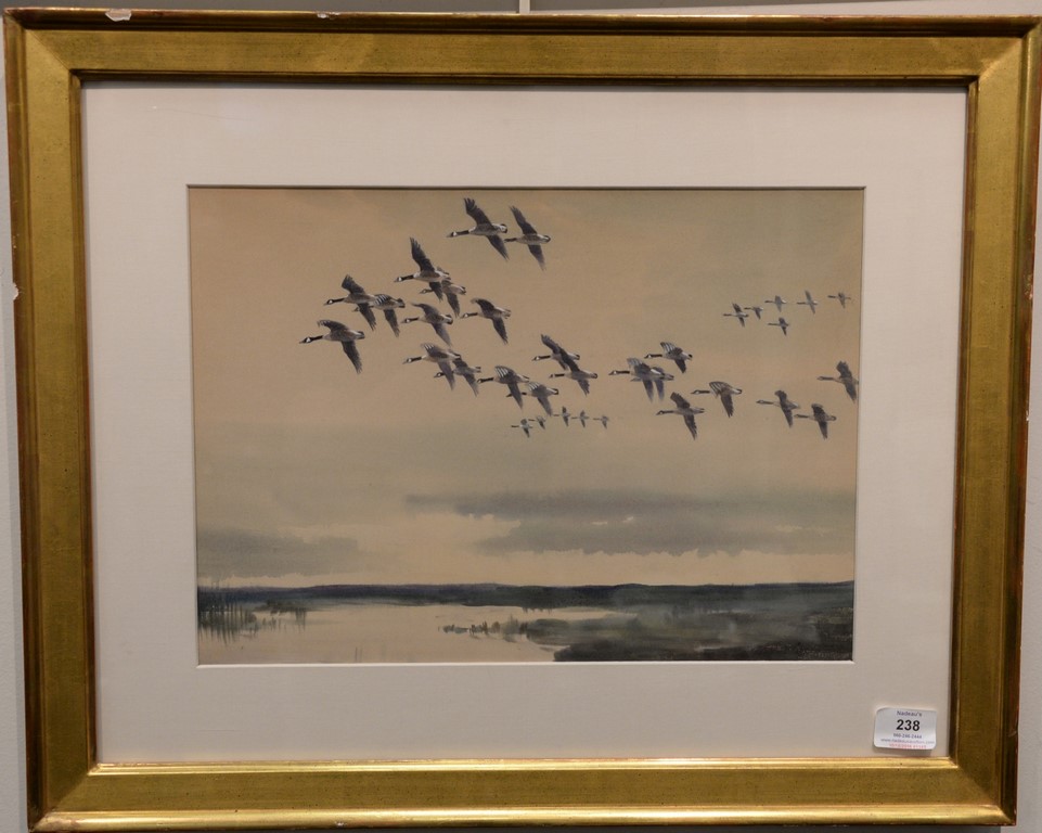 Roland Green 1896-1972, watercolor, Canadian Geese, signed lower right: Roland Green, sight size 11 1/2 x 16 Provenance: Property from Credit Suisse’s Americana Collection
